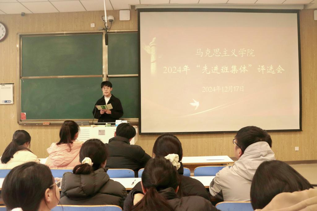 会前,各参选班级代表抽签决定发言顺序。会议伊始,各位班级代表从班级概况、学风建设、志愿实践、文体发展等方面展示各自班级的风采。其中,2023级思想政治教育二班学风建设突出,同学们每天打卡背诵英语单词,班干部认真打卡学习强国,班级成员积极参加文体活动和社会实践活动;2022级思想政治教育一班以团课小组和学习小组建设为特色,通过举办丰富多样的实践活动,将团课精神深入人心,真正做到了学以致用、知行合一。