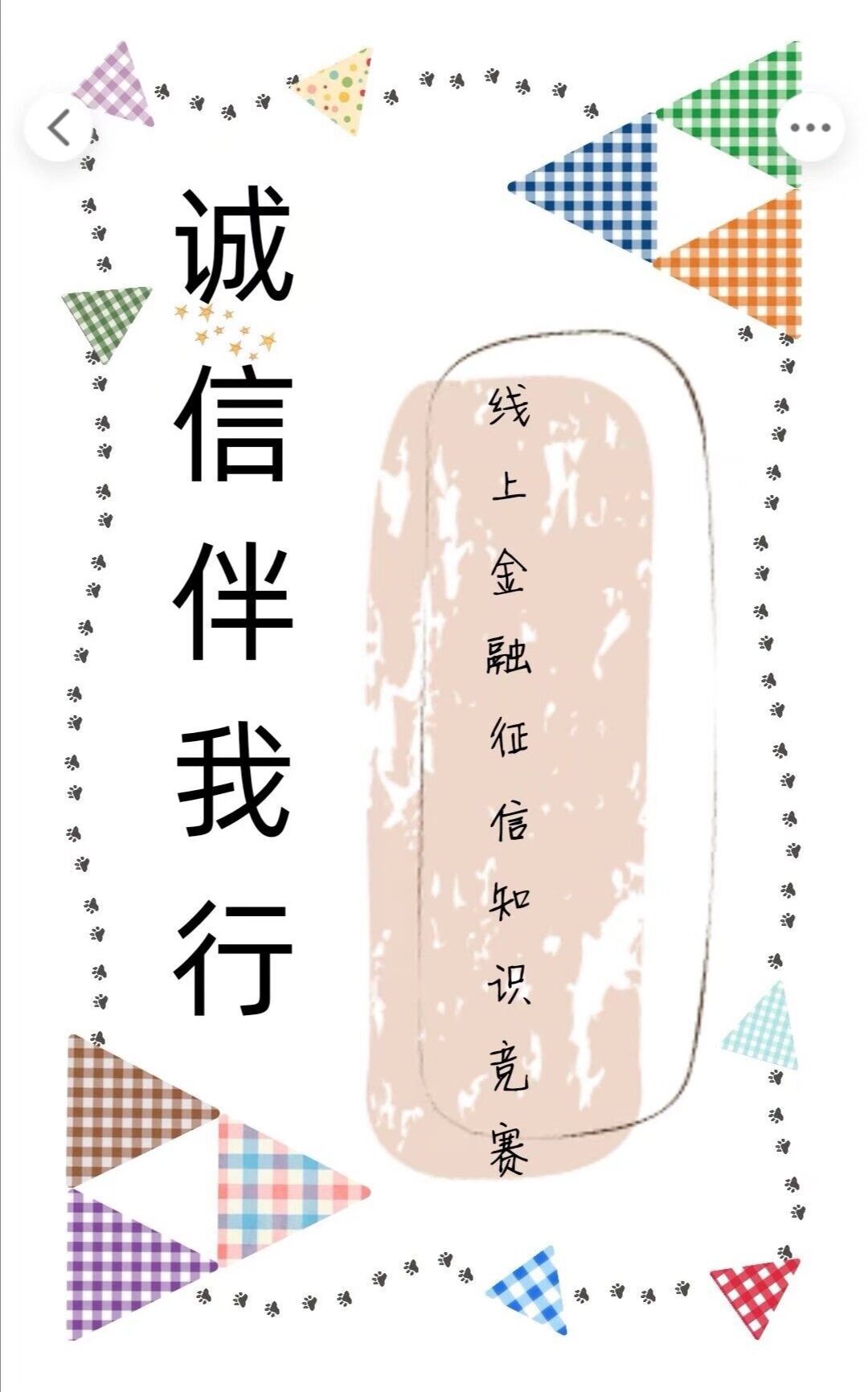 为加强学生金融征信知识的普及教育,弘扬诚信传统美德,beat365在线唯一官网分团委学生会学贷部与新媒体部门联合举办“学生资助诚信教育”主题系列活动。本次活动主要包括两个部分:一是《云课堂|学生资助与征信知识》微信推文线上学习活动;二是“诚信伴我行”线上金融征信知识竞赛。