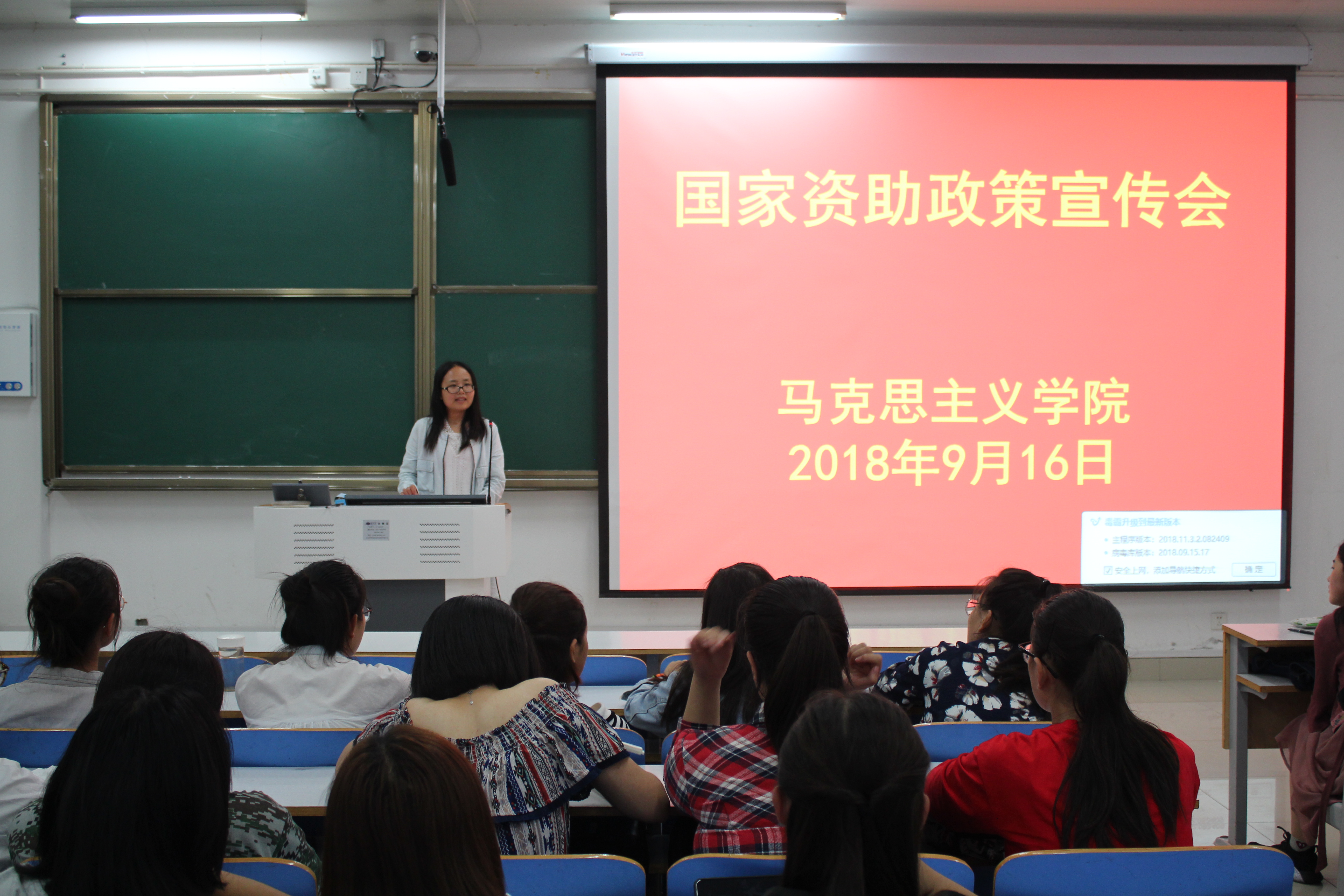 为使新生深入了解国家资助政策,确保国家各项资助政策顺利推行,9月16日晚,beat365于社科楼516教室召开国家资助政策宣讲会。团委老师曹菁菁与2018级全体学生共同参加了本次宣讲会。宣讲会由学贷部部长史丹丹主持。