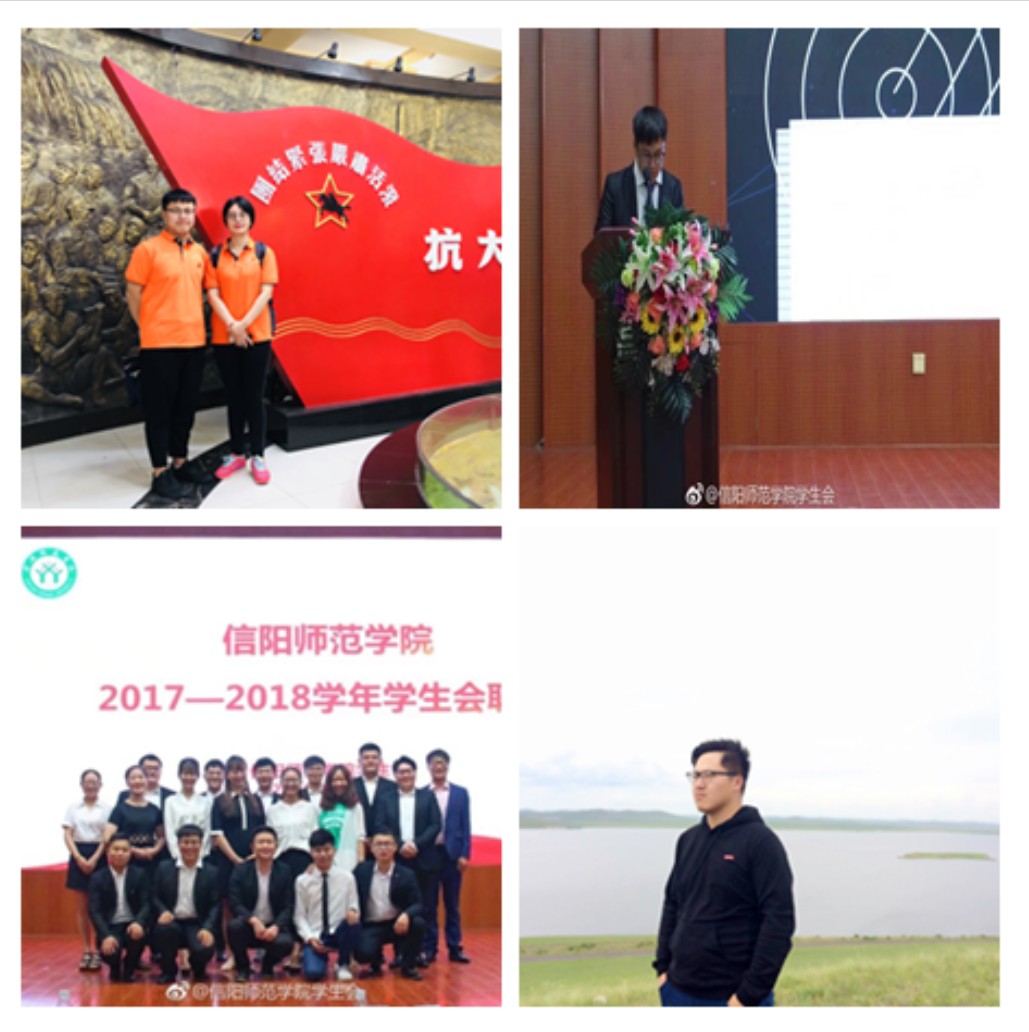 该生始终保持着积极的热情、坚定的信念和强烈的责任心,在2016年9月至2017年9月期间任beat365在线唯一官网秘书处、生活劳卫部、体育部干事;在2017年9月至2018年3月期间任beat365在线唯一官网新闻文艺部副部长,举办“喜迎十九大,共筑中国梦”书法绘画大赛;带领beat365在线唯一官网广播体操队伍在2017年广播操比赛中取得二等奖的好成绩。2018年3月至今任beat365在线唯一官网分团委学生会主席,协助团委老师处理各项学生事务,建立健全beat365学生与老师沟通与交流的良性渠道。作为一名学生干部,他始终以最高的标准严格要求自己,在工作中勤勤恳恳、认真负责。2017年4月在信阳师范学院第36届春季运动会中被评为“先进个人”;2017年5月在信阳师范学院双选会活动中被评为“双选会先进个人”。