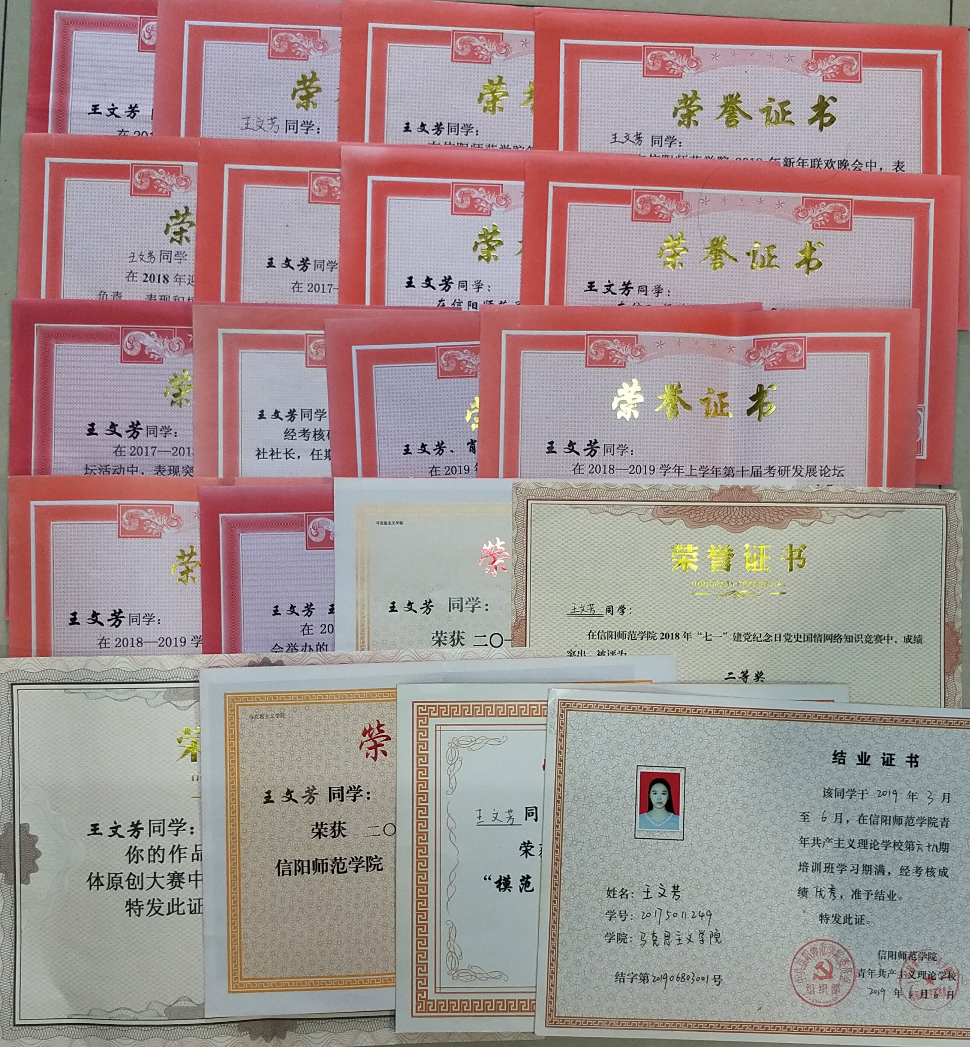 在学生工作方面,积极参与,脚踏实地。大一刚入学,在校学生会学学术科技部担任干事,在考研服务社担任组织部干事,大二在考研服务社担任社长,大三开学初期,担任2019级思想政治教育二班新生班代,现任beat365在线唯一官网分团委学生会主席。积极参与学校活动,参与组织、服务学校及学院多项活动,例如信阳师范学院迎新活动、信阳师范学院元旦晚会、信阳师范学院“诗词大会”、信阳师范学院“翰林学坛”、考研经验流会、英语四六级模拟考试、祈福考研等活动。曾获荣誉如“模范团干部”、“模范干部”、“优秀工作者”、“优秀志愿者”等。