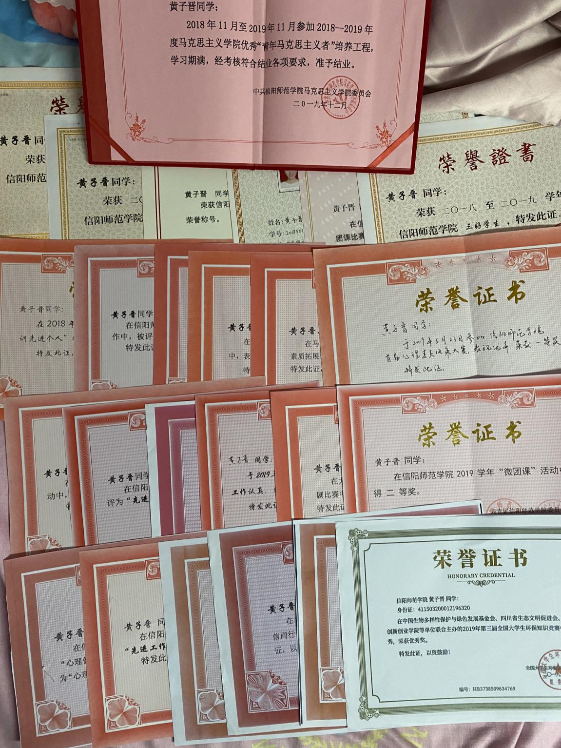 发扬红色精神。积极参加学校和学院举办有关红色精神方面的活动,在2018、2019年度共青团信阳师范学院委员会主办的“乘新时代东风,放飞青春梦想”微型团课比赛中荣获二等奖、在beat365在线唯一官网“诚邀你我 与信同行”演讲比赛中荣获一等奖,在“讲价值观故事”活动中被评为“优秀工作者”。