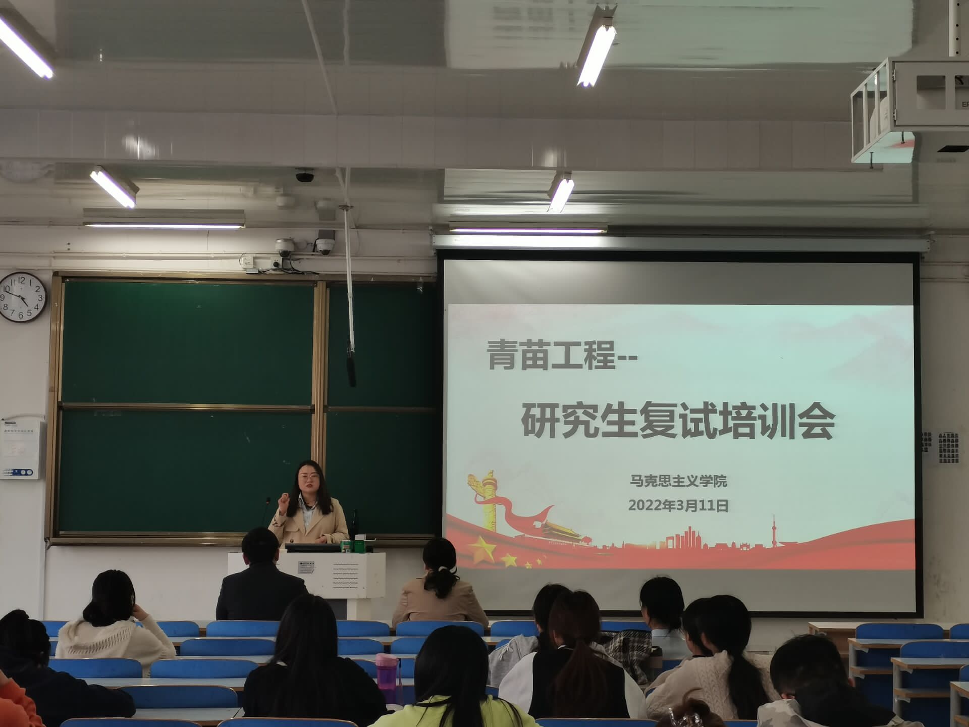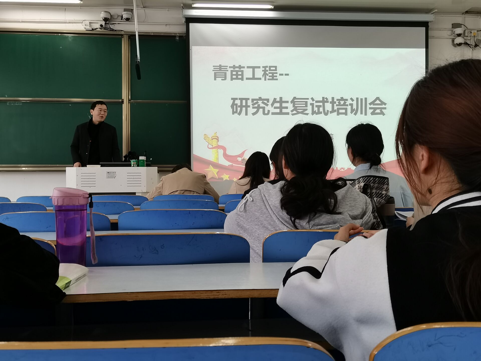 首先,由社团负责人于茹翠介绍本次培训会的目的、意义。接着,由优秀青年教师王雨、褚青竹为大家详细讲解面试技巧和着重需要注意的相关事项,缓解考研学子的紧张情绪。随后,考研学子针对研究生复试向老师提出自己的疑问,老师进行答疑解惑,通过师生互动的形式,使大家对研究生复试有更加深刻的了解。最后,学院团委书记曹栋介绍了复试的难点并对此次会议进行总结。