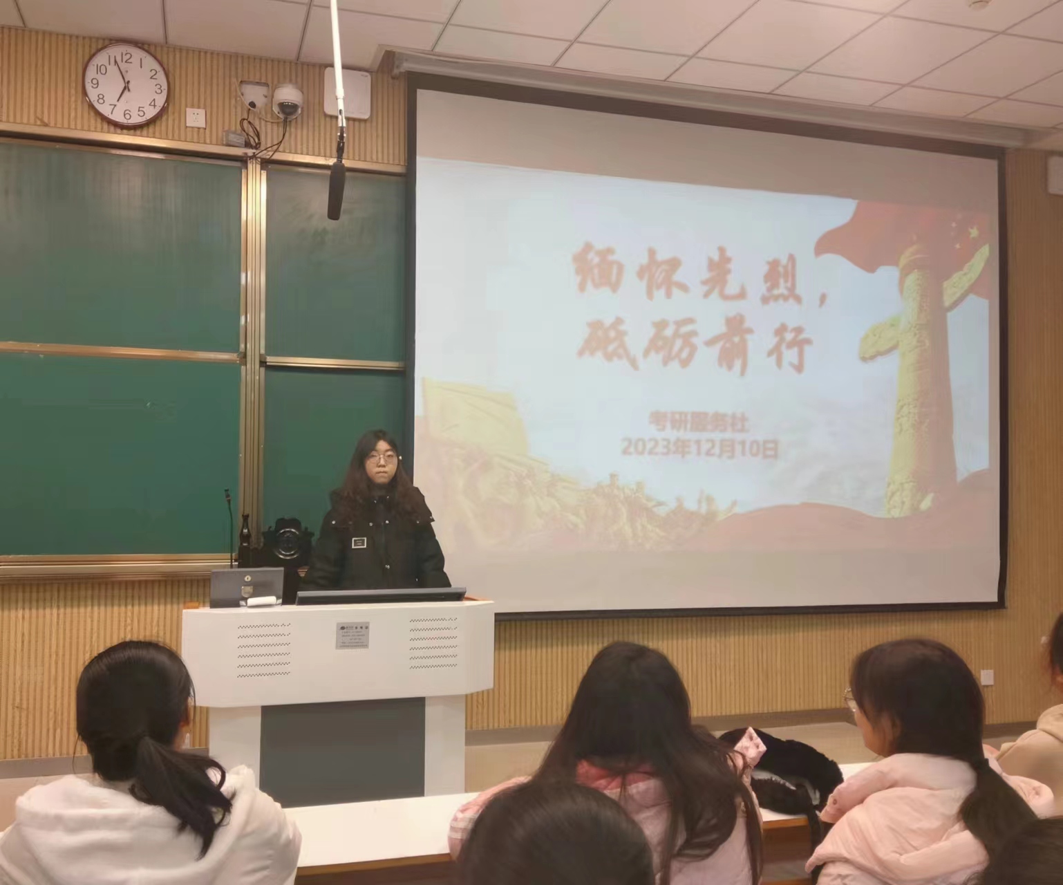 一寸山河一寸血,一抔热土一抔魂。12月10日晚,考研服务社在社科楼515开展了“缅怀先烈,砥砺前行”主题团课。社团全体成员参加本次团课活动,团课由团支书冯钰丹主持。