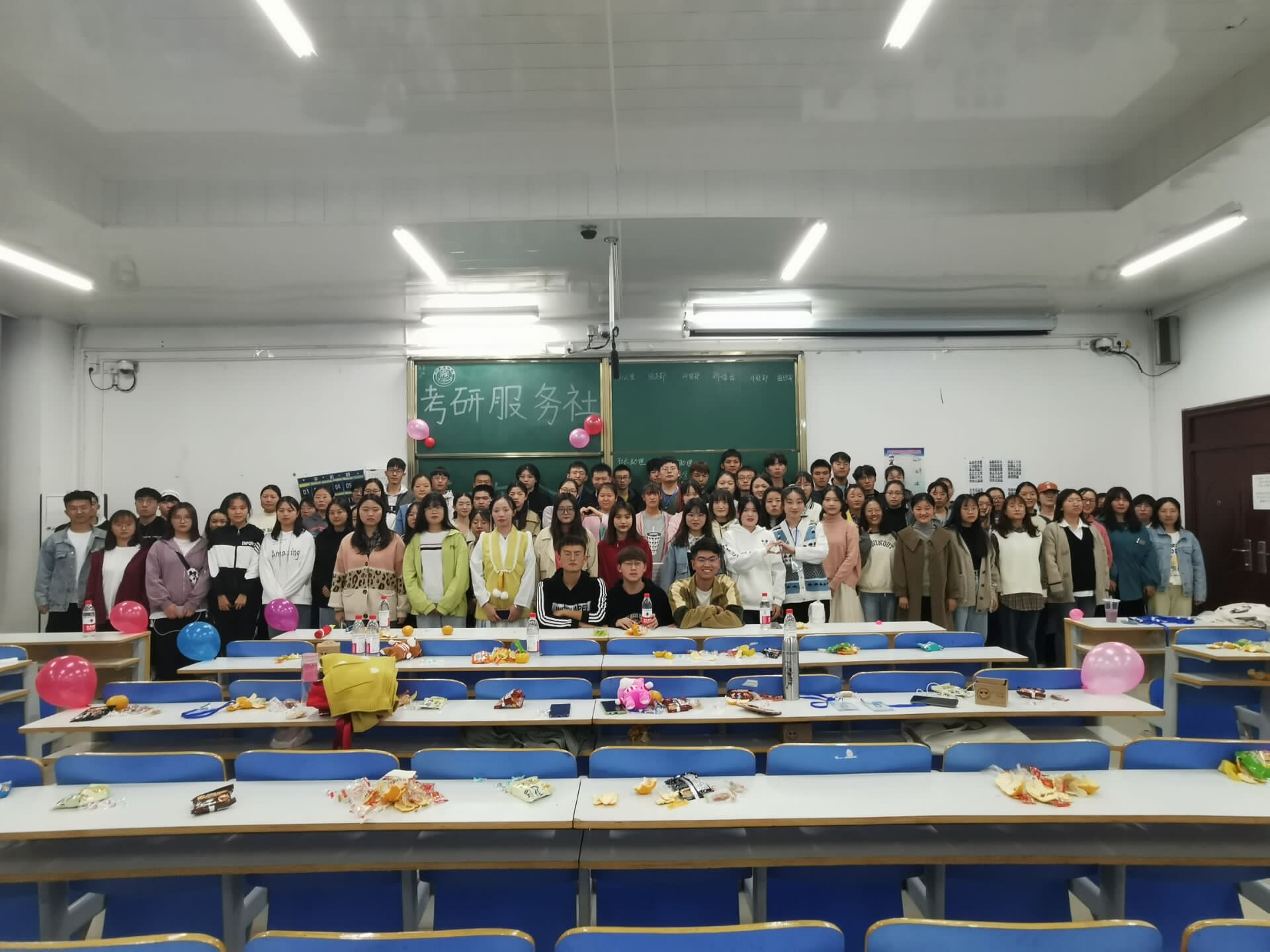 会议始初,由社长雷诗雨和团支书徐千涵结合ppt从社团简介、部门介绍、精品活动、社团荣誉、研氏家族等方面详细介绍了考研服务社。接着,由社团部分成员进行歌曲表演。大家积极参加你画我猜、听歌识曲、击鼓传花等游戏,现场气氛十分活跃。最后社团理事会成员组织新社员进行干事竞选,竞选分为自我介绍和现场提问两个环节,最后由社团理事会成员商议,评选出考研服务社第十二届干事名单。