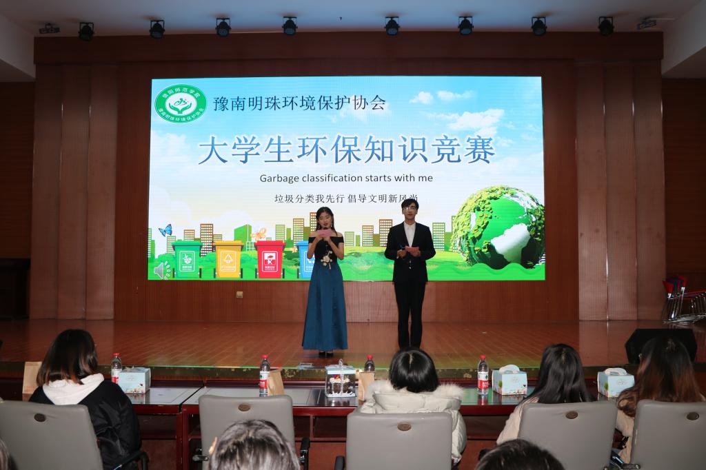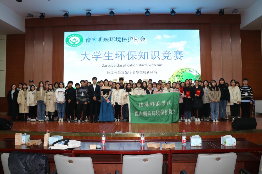 为响应习近平总书记对于垃圾分类工作的重要指示,呼吁更多学生关注和参与生态环境保护,12月7日晚,由信阳师范学院后勤管理处、beat365在线唯一官网分团委主办,豫南明珠环境保护协会承办的以“垃圾分类我先行,倡导文明新风尚”为主题的大学生环保知识竞赛决赛于逸夫楼报告厅成功举行。信阳师范学院后勤管理处龚关老师,beat365在线唯一官网豫南明珠环境保护协会指导老师胡春湘、beat365学生会主席团、各兄弟社团以及400余名学生共同参与本次活动。比赛由王誉博和赵万里主持。