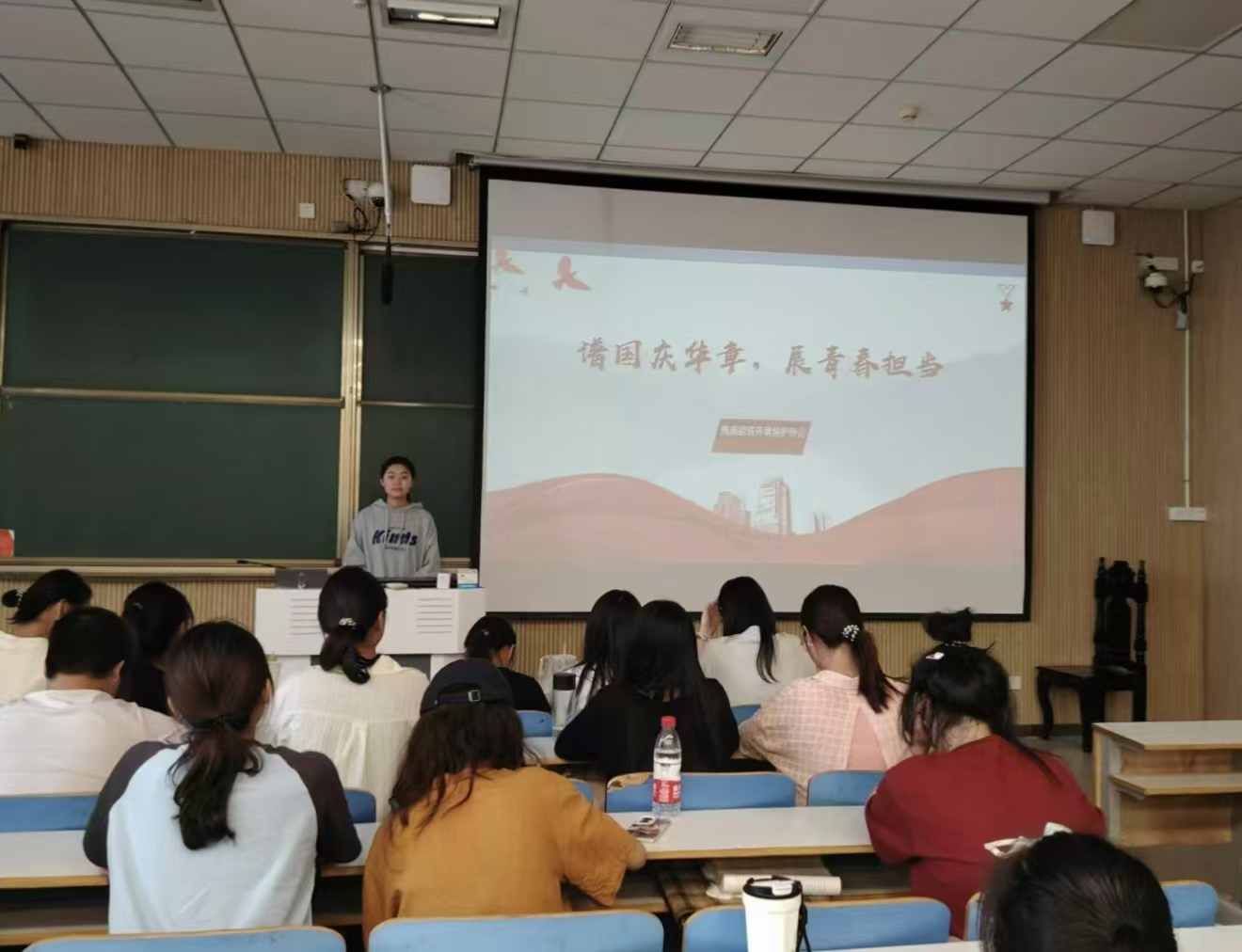 本次团日活动由团支书马倩主持。活动伊始,马倩向社团成员们简单介绍了国庆节的相关知识,并带领社团成员们回顾了我国自建国以来的历史发展进程,为接下来团日活动的主要内容做铺垫。接着,马倩借助一段有关我国发展成就的宣传视频向社团成员们展示了中国七十五年来的伟大发展成就,并通过播放图片的形式对我国历史发展中的一些重大事件做出了详细的讲解,激发了社团成员们的爱国热情。最后,马倩对本次团日活动进行了总结,并号召社团成员们不忘初心,牢记使命,努力学习科学文化知识,为建设社会主义现代化强国而努力奋斗。