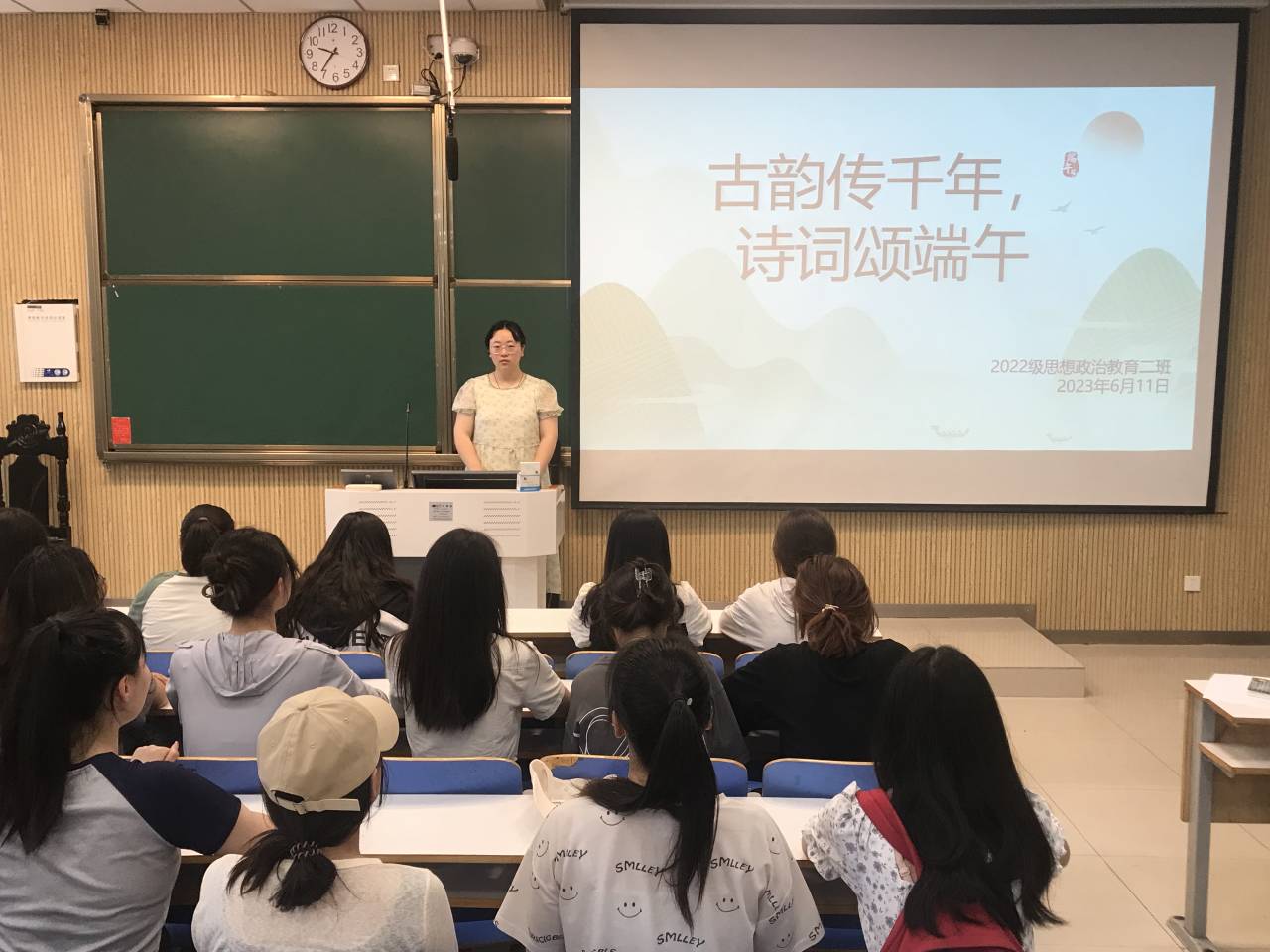 6月11日上午,beat365在线唯一官网2022级思想政治教育二班在社科楼515教室开展“古韵传千年,诗词颂端午”主题团日活动。beat3652022级思想政治教育二班全体成员共同参加此次团日活动。活动由团支书李佳音主持。