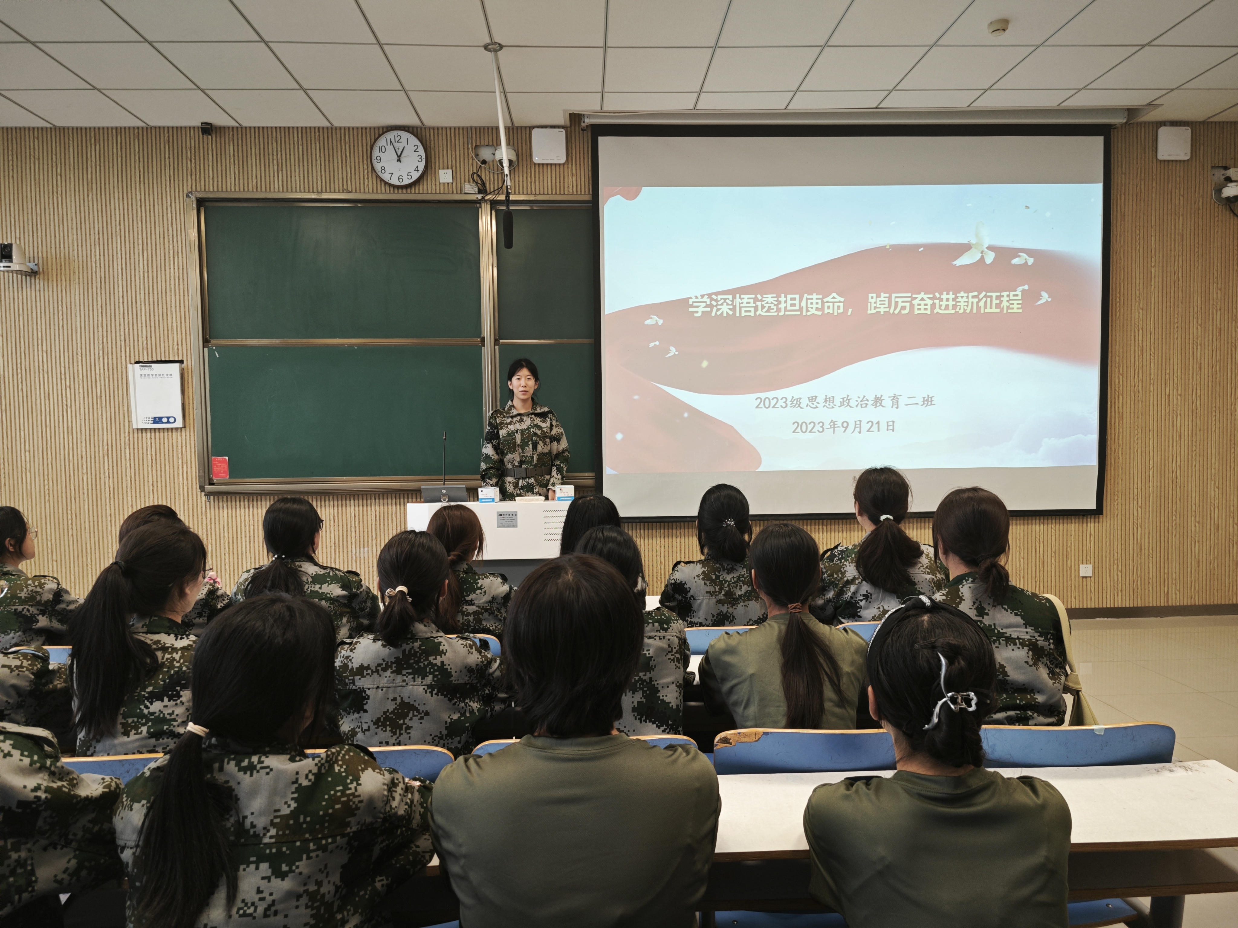 9月21日下午,beat365在线唯一官网2023级思想政治教育二班在社科楼515教室召开“学深悟透担使命,踔厉奋进新征程”主题团课。beat3652023级思想政治教育二班全体同学参与本次团课,团课由班级负责人王慜初主持。