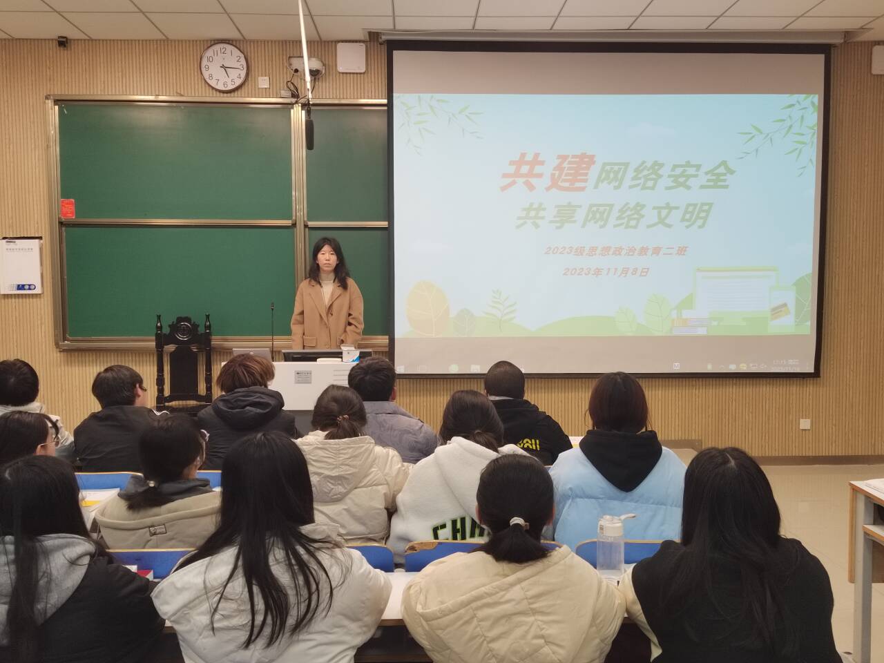 为了更好地提高大学生网络安全防范意识,共建共享网络安全,11月8日上午,beat365在线唯一官网2023级思想政治教育二班在社科楼515教室召开“共建网络安全,共享网络文明主题团课”。本次团课由团支书王慜初主持。