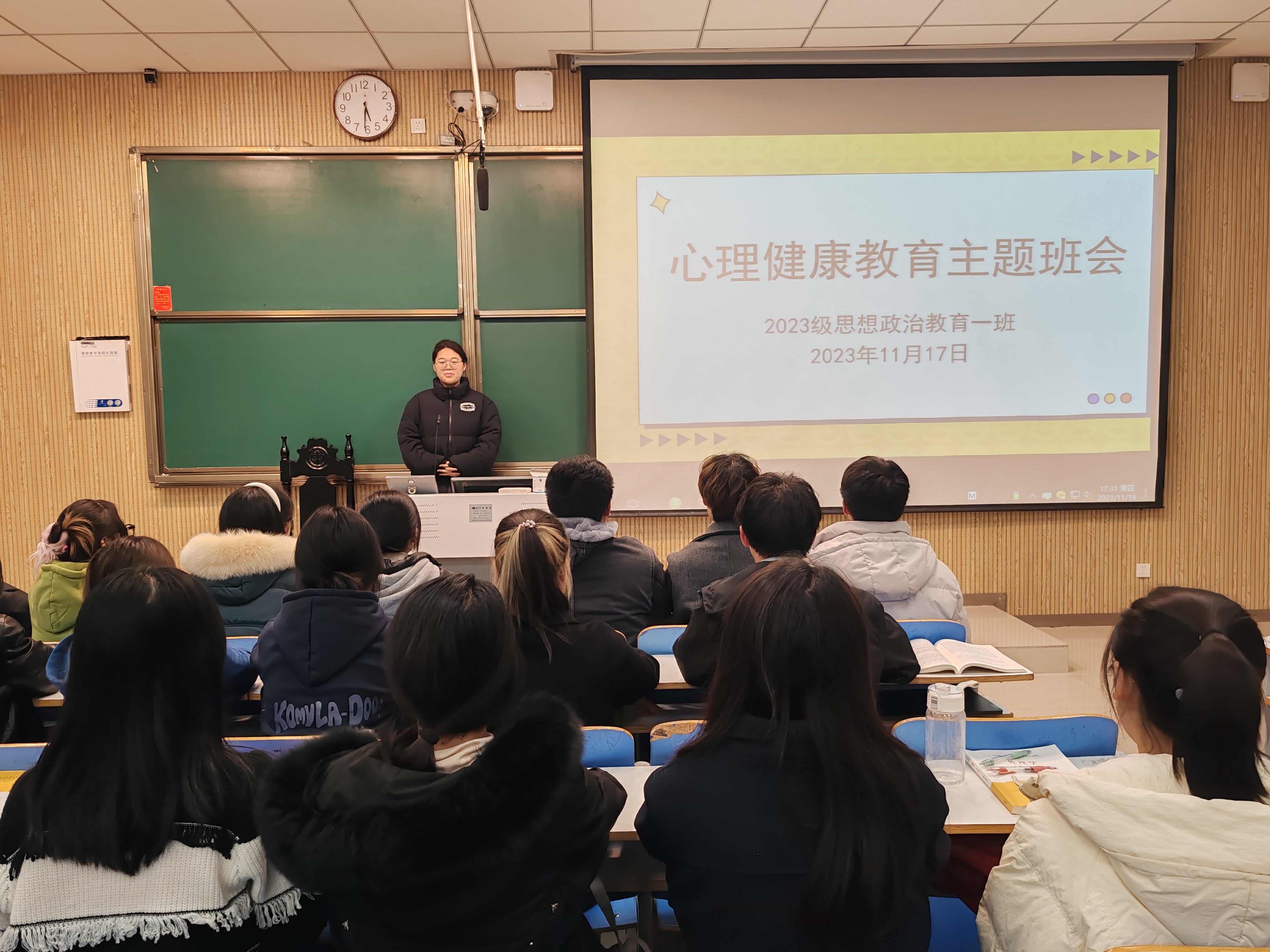为帮助我班学子了解心理健康知识,掌握心理调适方法,增强心理素质,更好地适应学习和生活,11月17日上午,beat365在线唯一官网2023级思想政治教育一班在社科楼515教室召开心理健康教育主题班会。beat3652023级思想政治教育一班全体成员参与本次班会,班会由心理委员夏一萌主持。