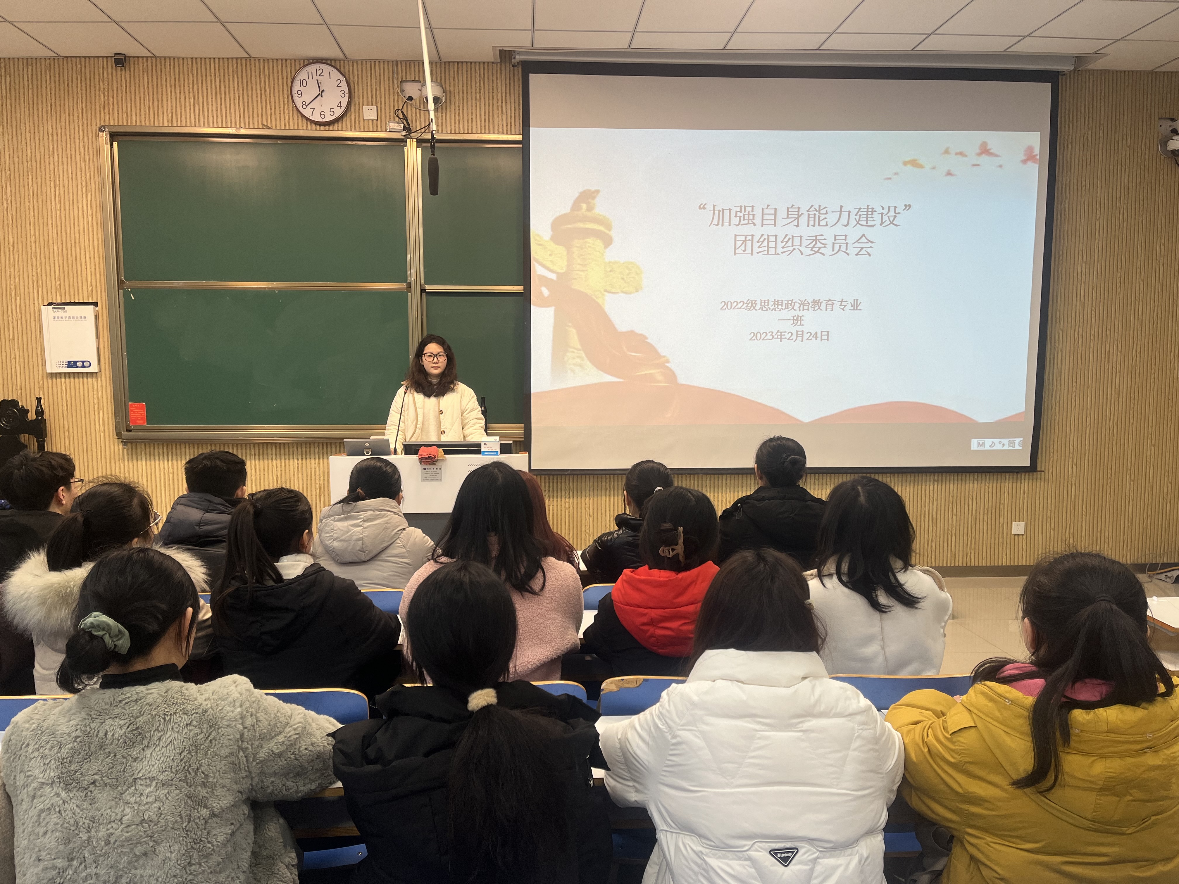 为推进团组织规范化建设,更好发挥团组织积极作用,2月24日上午,beat365在线唯一官网2022级思想政治教育一班在社科楼515教室召开“加强自身能力建设”团组织委员会。2022级思想政治教育一班团委员参与本次会议,会议由团支部书记李佳茹主持。