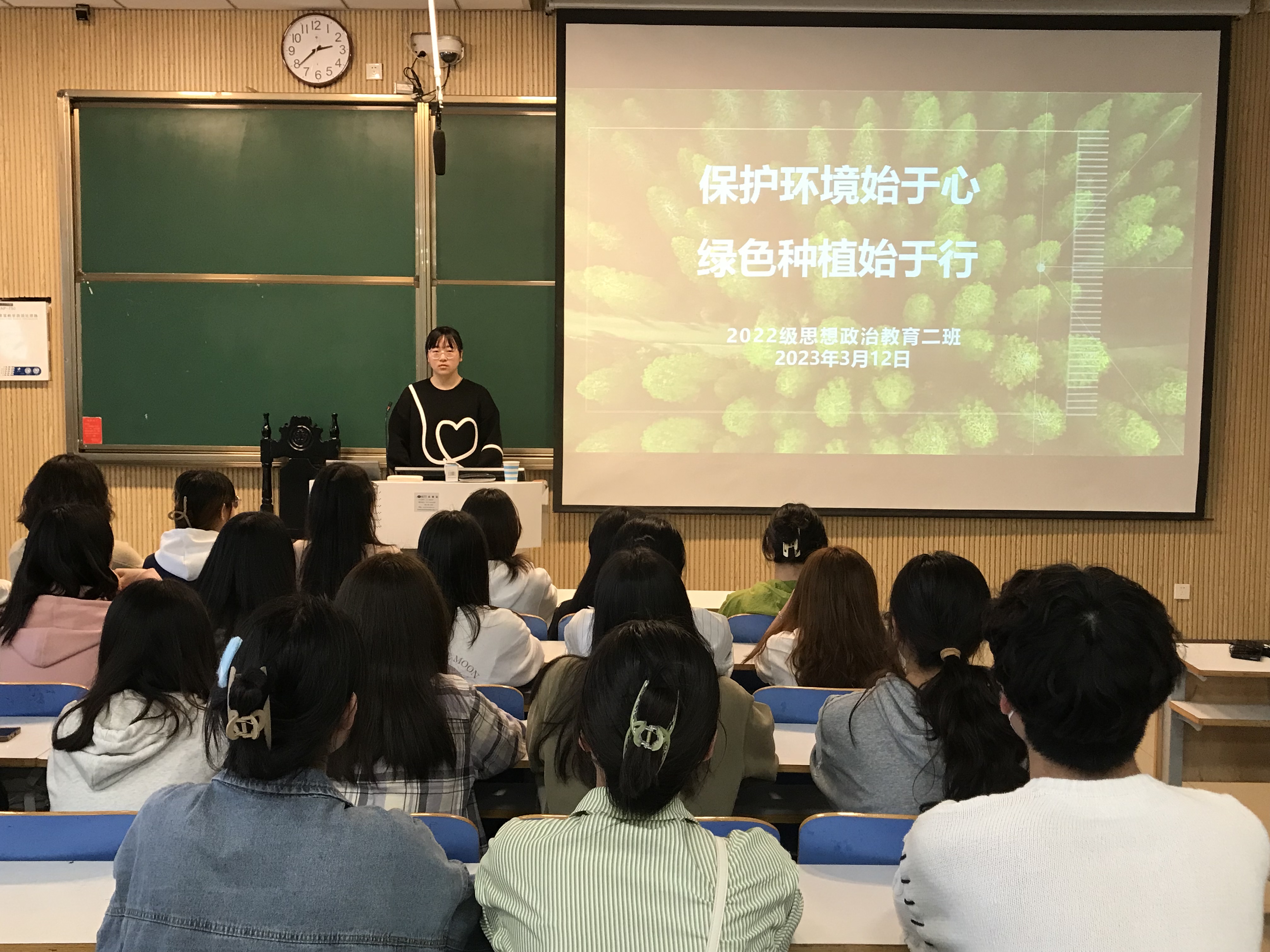 3月12日下午,beat365在线唯一官网2022级思想政治教育二班在社科楼515教室召开“保护环境始于心 绿色种植始于行”主题班会。2022级思想政治教育二班全体同学共同参加会议。班会由班长李佳音主持。