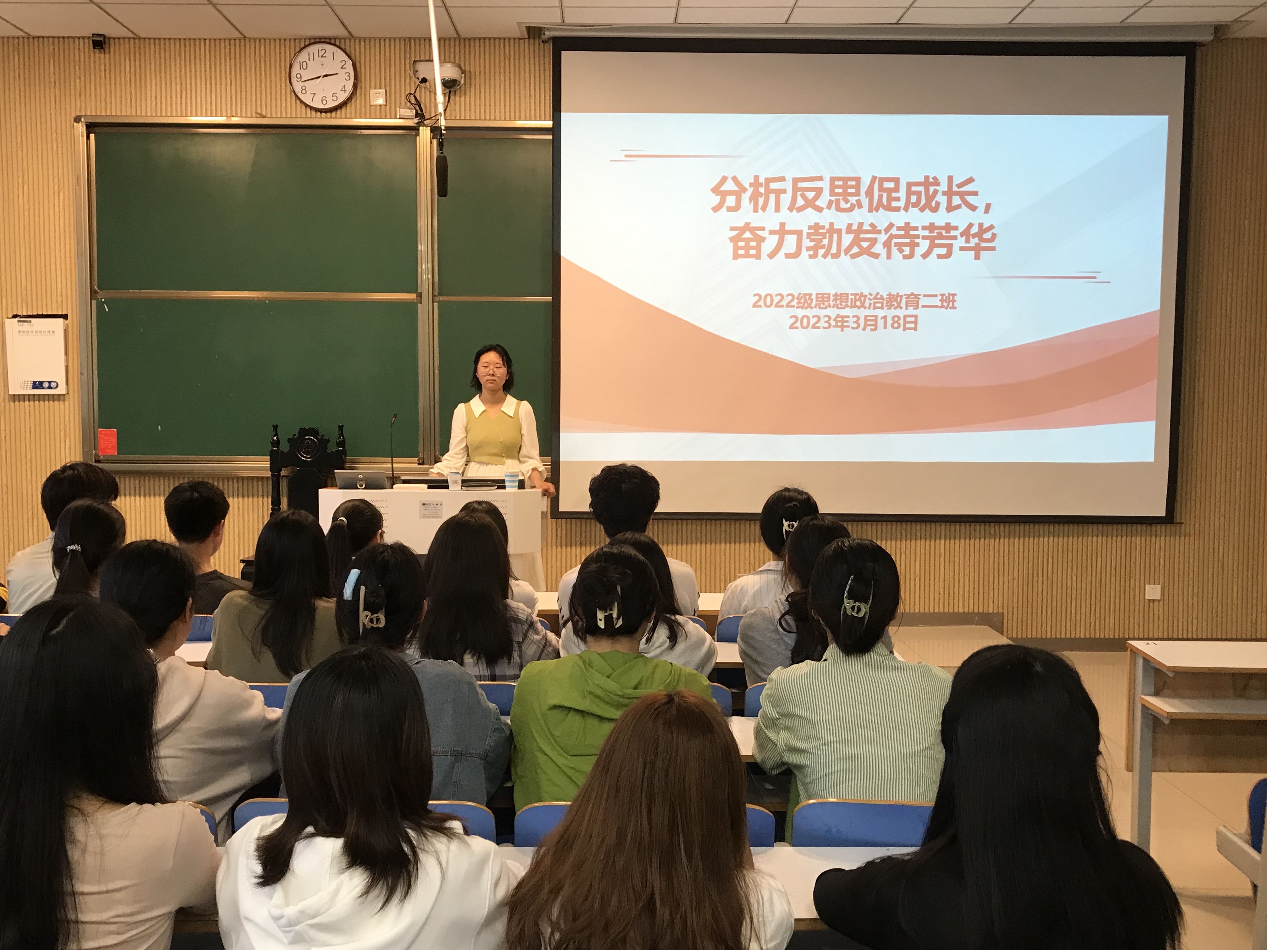 在学习中成长,于反思中进步。3月18日下午,beat365在线唯一官网2022级思想政治教育二班在社科楼515教室召开“分析反思促成长 奋力勃发待芳华”主题班会。2022级思想政治教育二班全体同学共同参加会议。班会由学习委员谢佳邑主持。