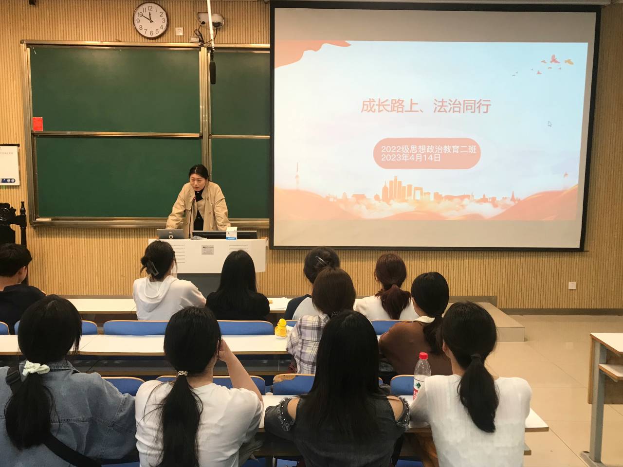 为进一步落实习近平总书记关于教育的重要论述和习近平法治思想,提升师生法治素养,4月14日上午,beat365在线唯一官网2022级思想政治教育二班在社科楼515教室召开“成长路上,法治同行”主题班会,2022级思想政治教育二班全体同学共同参加。班会由班主任杨春艳主持。