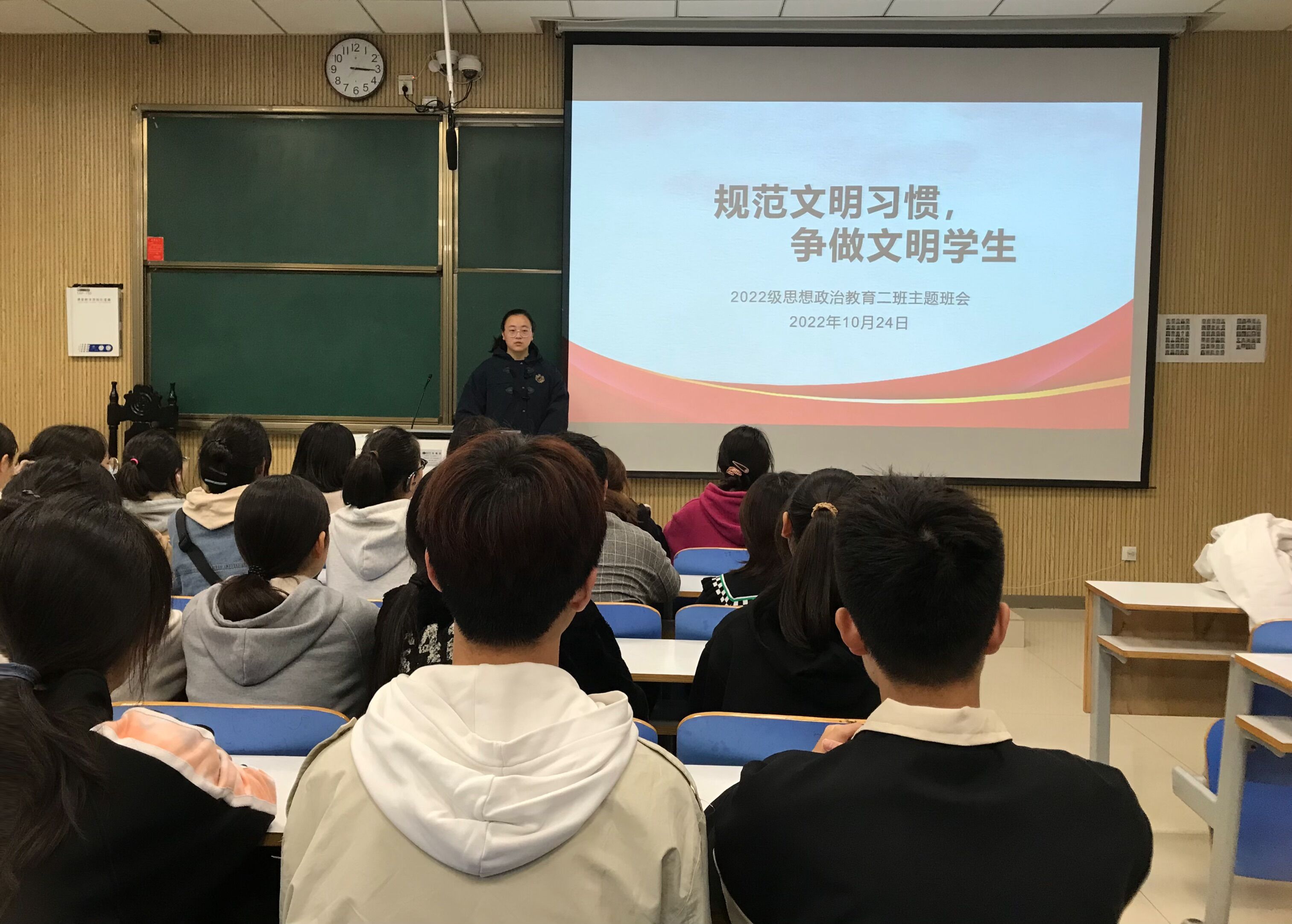 为引导大学生进一步培育和践行社会主义核心价值观、推进文明校园建设,10月24日下午,beat365在线唯一官网2022级思想政治教育二班在社科楼514教室召开“规范文明习惯,争做文明学生”主题班会。2022级思想政治教育二班全体同学共同参加会议。本次会议由团支书李佳音主持。