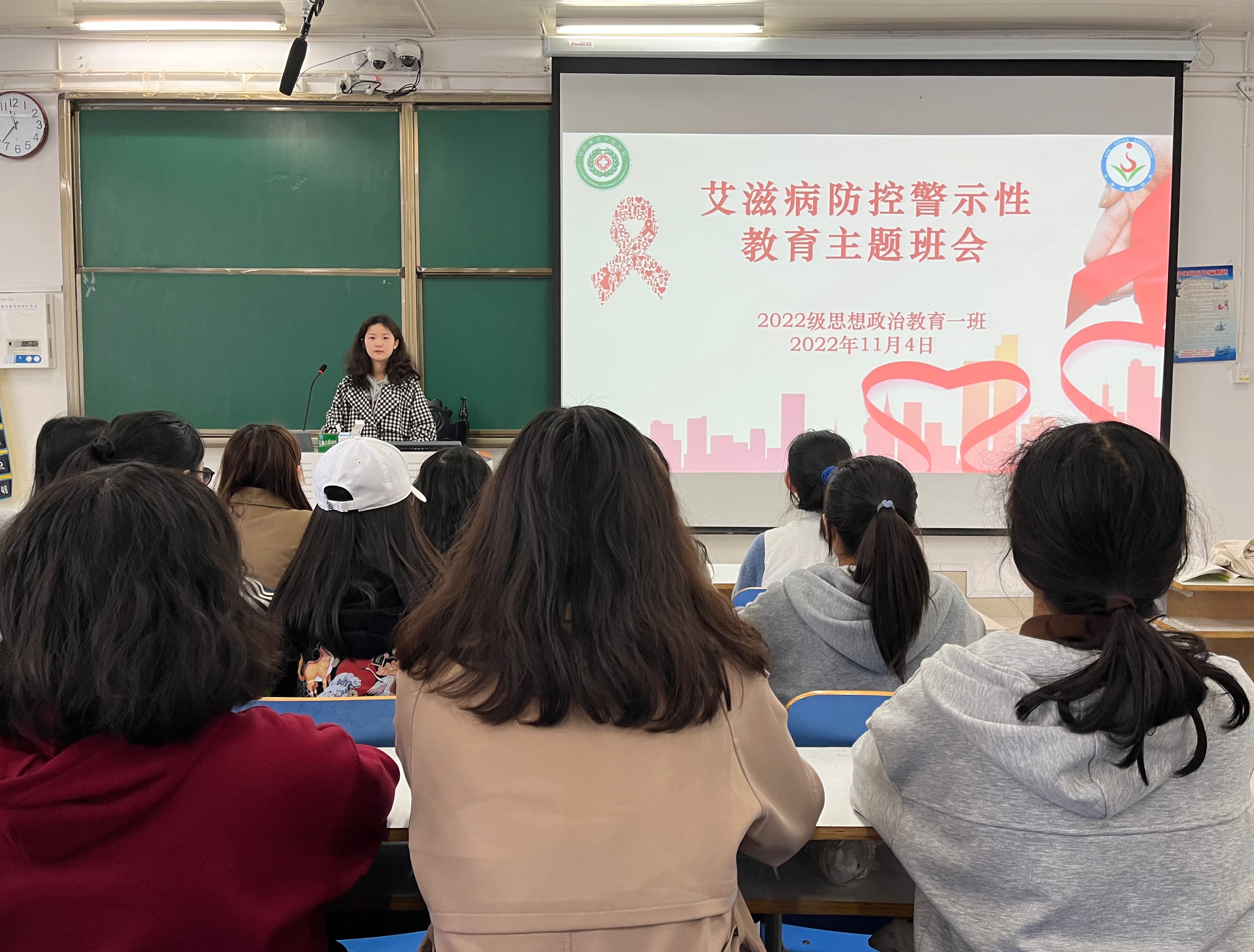 为宣传艾滋病预防知识,增强同学们的防护意识,11月4日下午,beat365在线唯一官网2022级思想政治教育一班在社科楼514教室召开“艾滋病防控警示性教育”主题班会,思想政治教育一班全体同学参与本次班会,班会由团支书李佳茹主持。