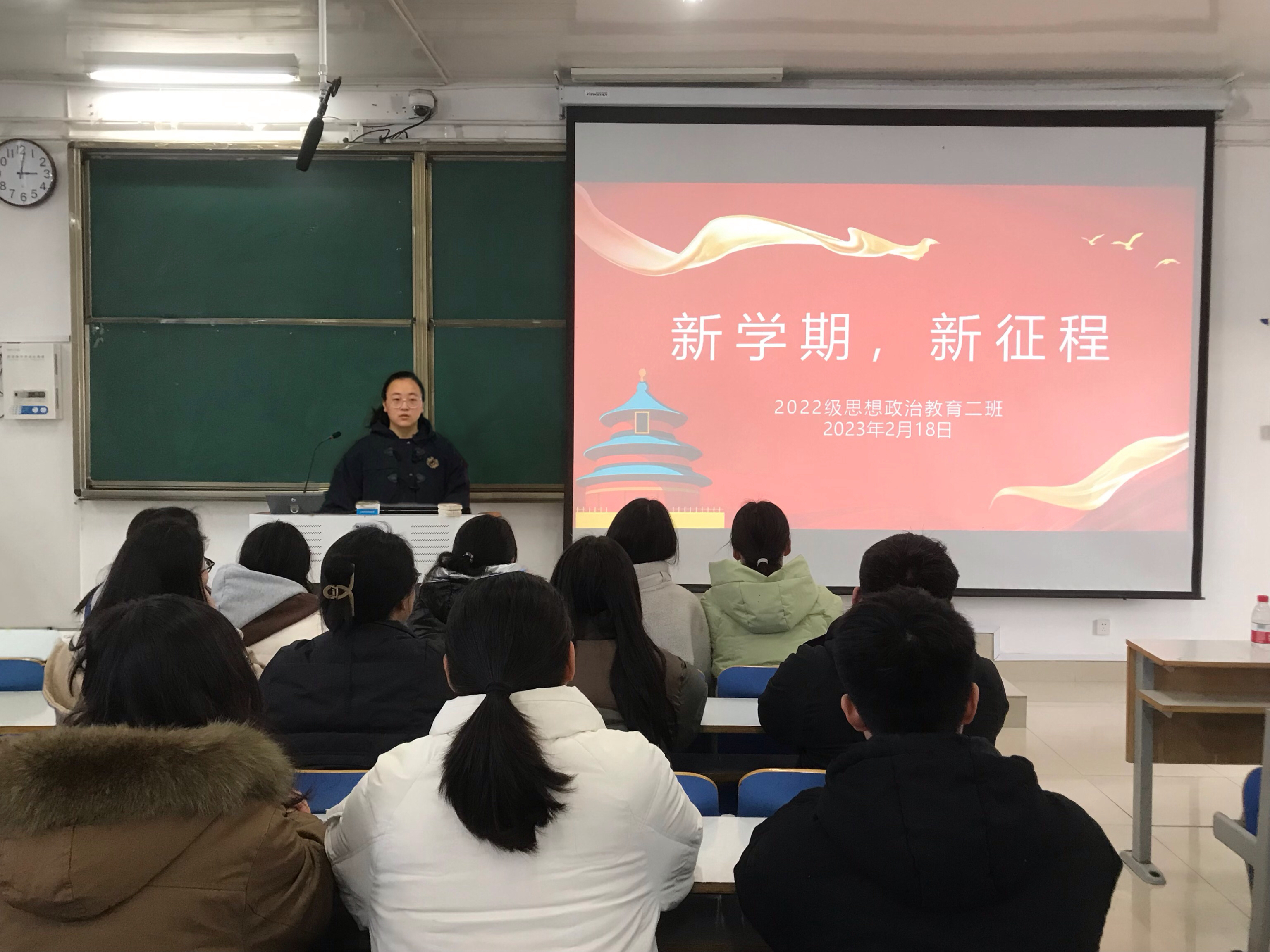 筑梦新学期,扬帆再启航。2月18日下午,beat365在线唯一官网2022级思想政治教育二班于社科楼514召开“新学期 新征程”主题班会。2022级思想政治教育二班全体同学共同参加会议。会议由班长李佳音主持。