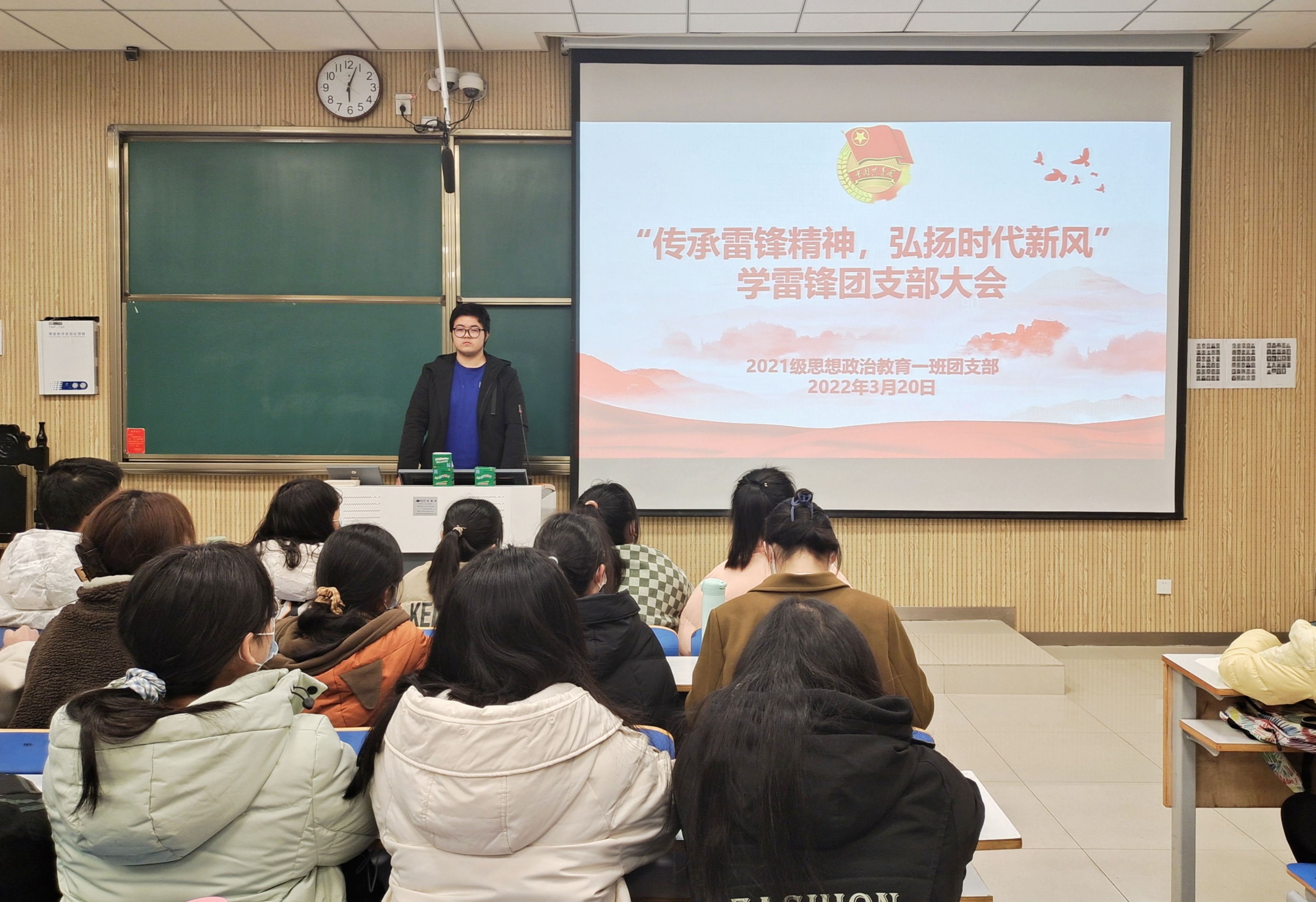 3月20日下午,beat365在线唯一官网2021级思想政治教育一班在社科楼515教室召开“传承雷锋精神,弘扬时代新风”学雷锋团支部大会。2021级思想政治教育一班全体团员共同参加了本次会议。会议由团支书戴翰林主持。