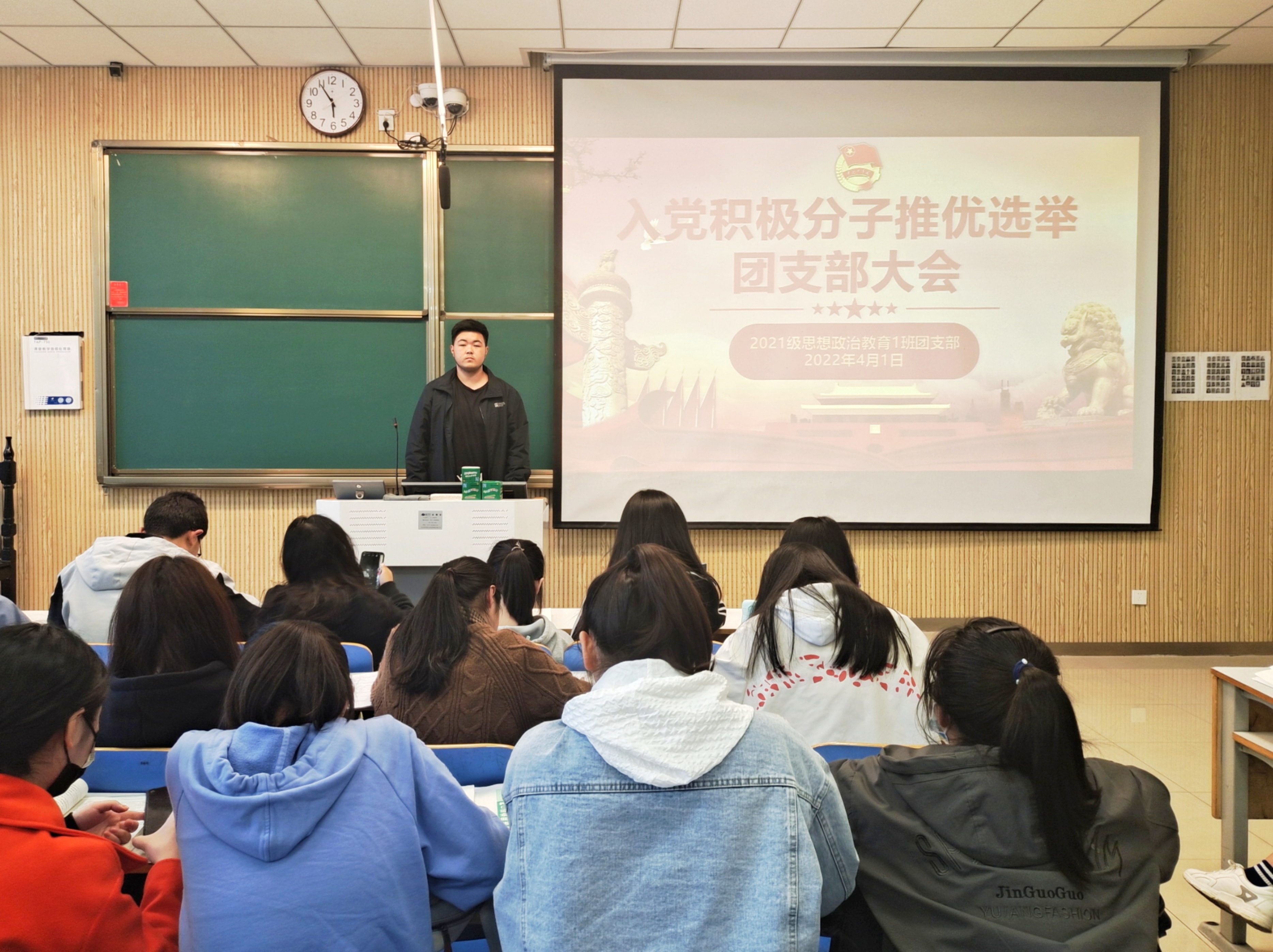 4月1日下午,beat365在线唯一官网2021级思想政治教育一班在社科楼515召开入党积极分子推优选举团支部大会。2021级思想政治教育一班全体团员共同参加了本次团支部大会。团支部大会由团支书戴翰林主持。