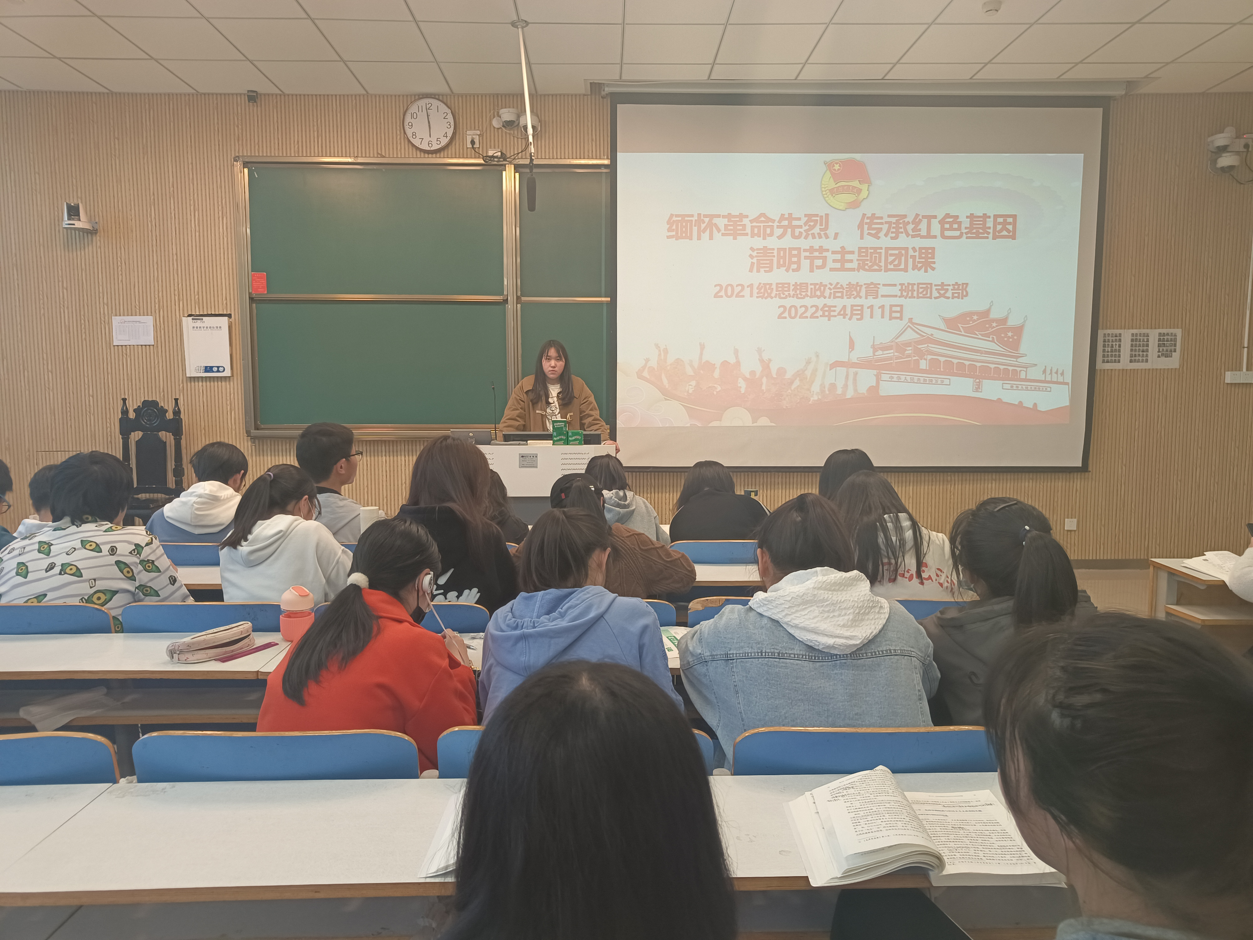 4月11日,beat365在线唯一官网2021级思想政治教育二班在社科楼515教室召开“缅怀革命先烈,传承红色基因”清明节主题团课。2021级思想政治教育二班全体团员参加此次团课,团课由团支书王婧欣主持。
