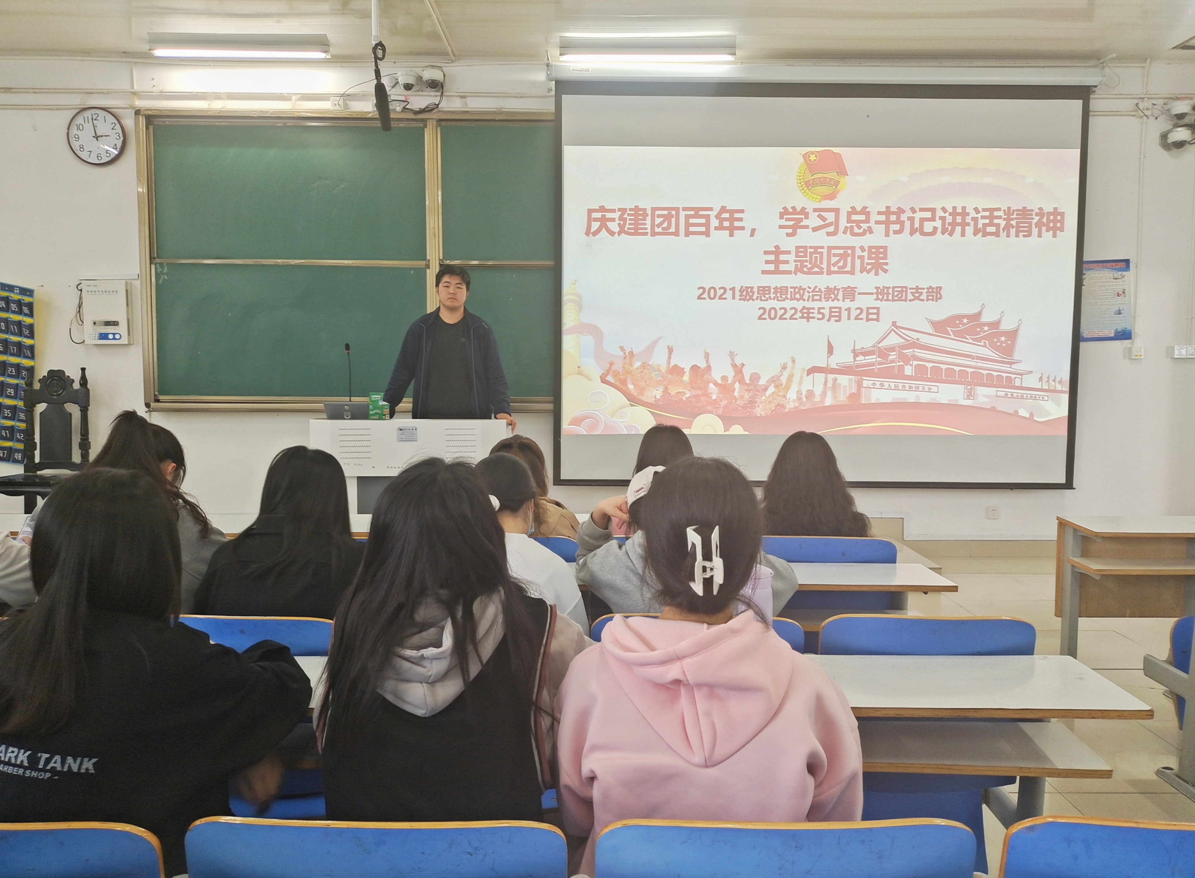 5月12日下午,beat365在线唯一官网2021级思想政治教育一班在社科楼514教室召开“庆建团百年,学习总书记讲话精神”主题团课。2021级思想政治教育一班全体团员共同参加了本次团课,团课由团支书戴翰林主持。