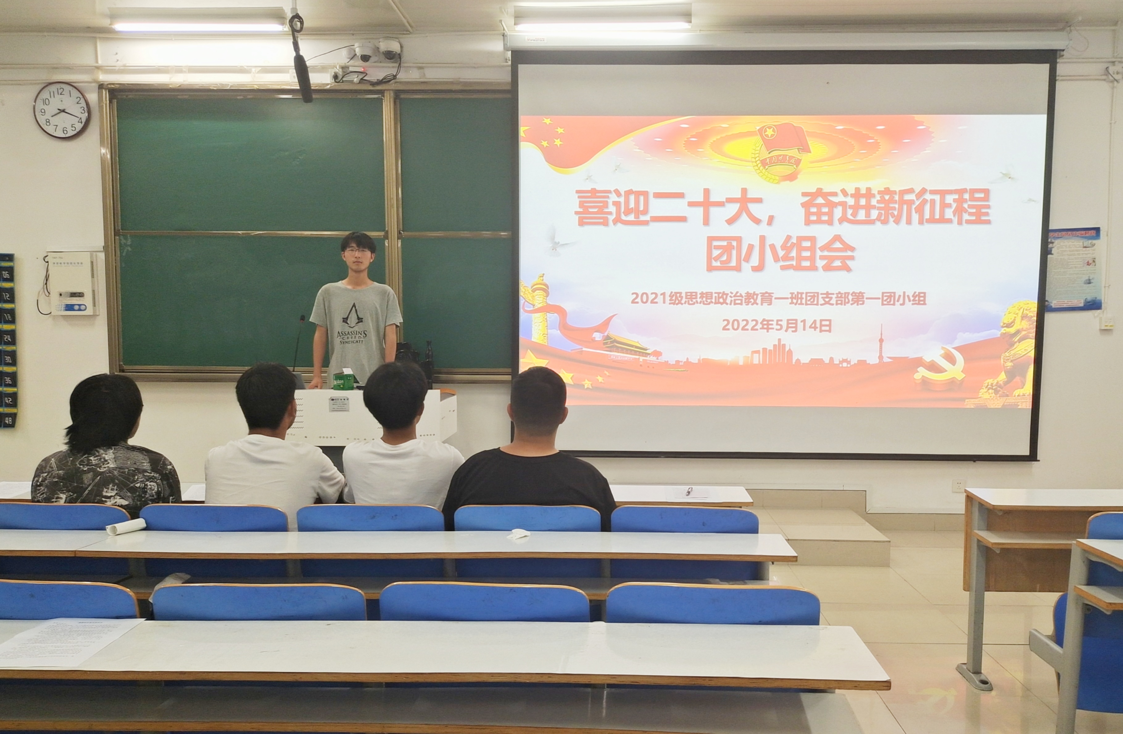 5月14日下午,beat365在线唯一官网2021级思想政治教育一班团支部第一团小组在社科楼514教室召开“喜迎二十大,奋进新征程”团小组会议。2021级思想政治教育一班团支部第一团小组全体成员共同参加了本次会议。会议由第一团小组组长孙宁主持。