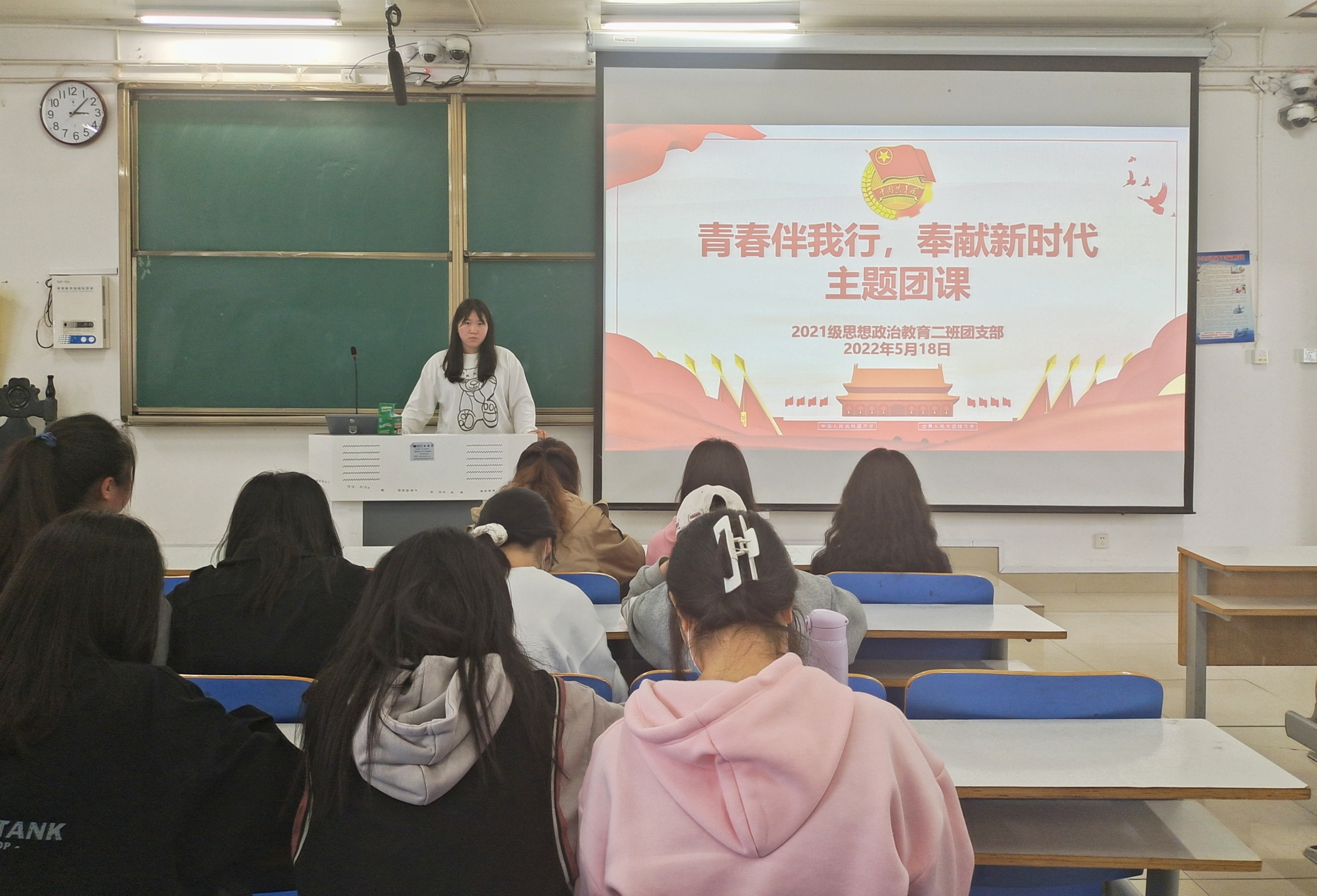 5月18日,beat365在线唯一官网2021级思想政治教育二班在社科楼514教室召开“青春伴我行,奉献新时代”主题团课。2021级思想政治教育二班全体团员参加此次团课。团课由团支书王婧欣主持。