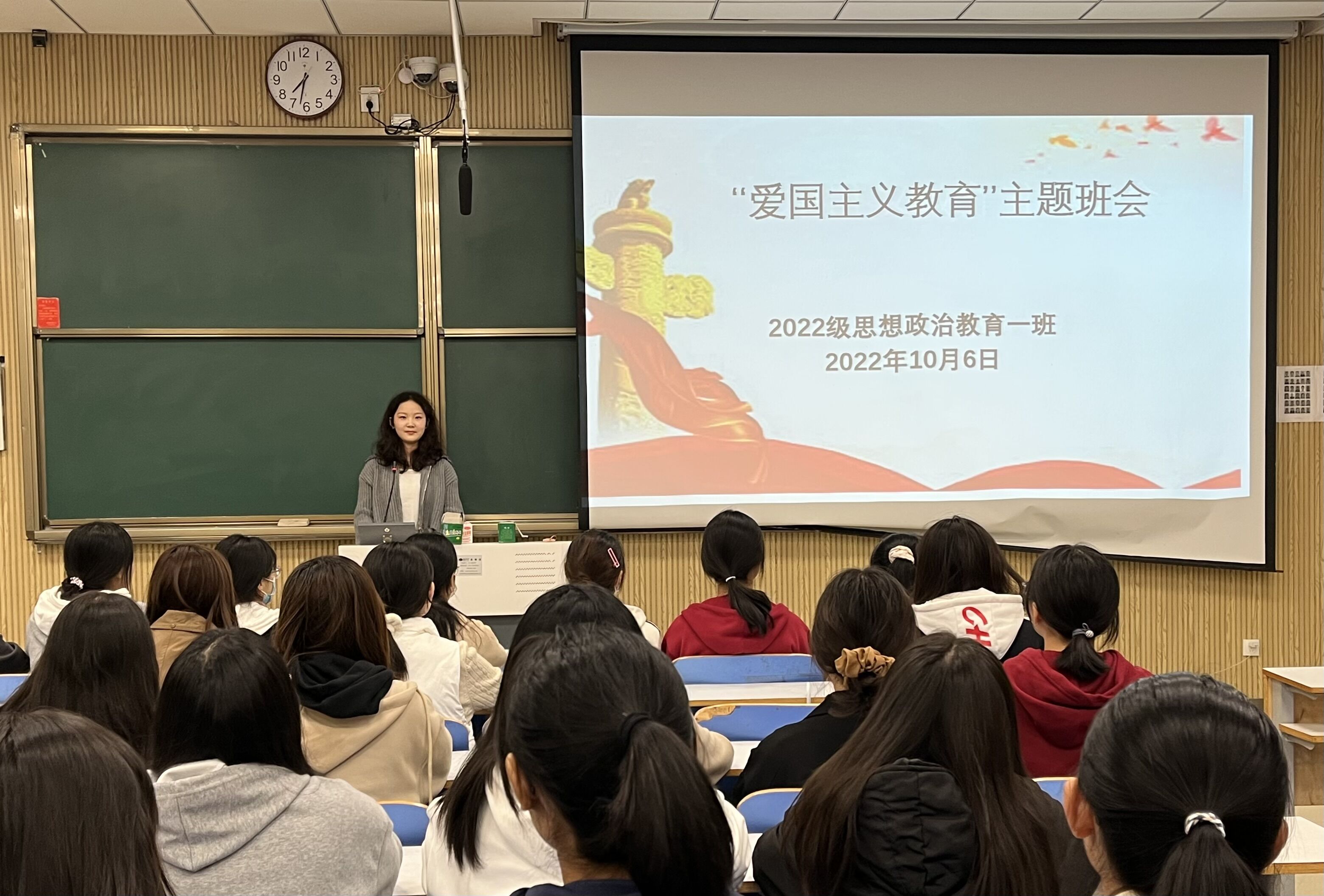 为增强同学们的爱国意识,弘扬爱国主义文化,10月6日下午,beat365在线唯一官网2022级思想政治教育一班在社科楼515教室召开“爱国主义教育”主题班会。2022级思想政治教育一班全体成员共同参加本次班会,班会由团支书李佳茹主持。