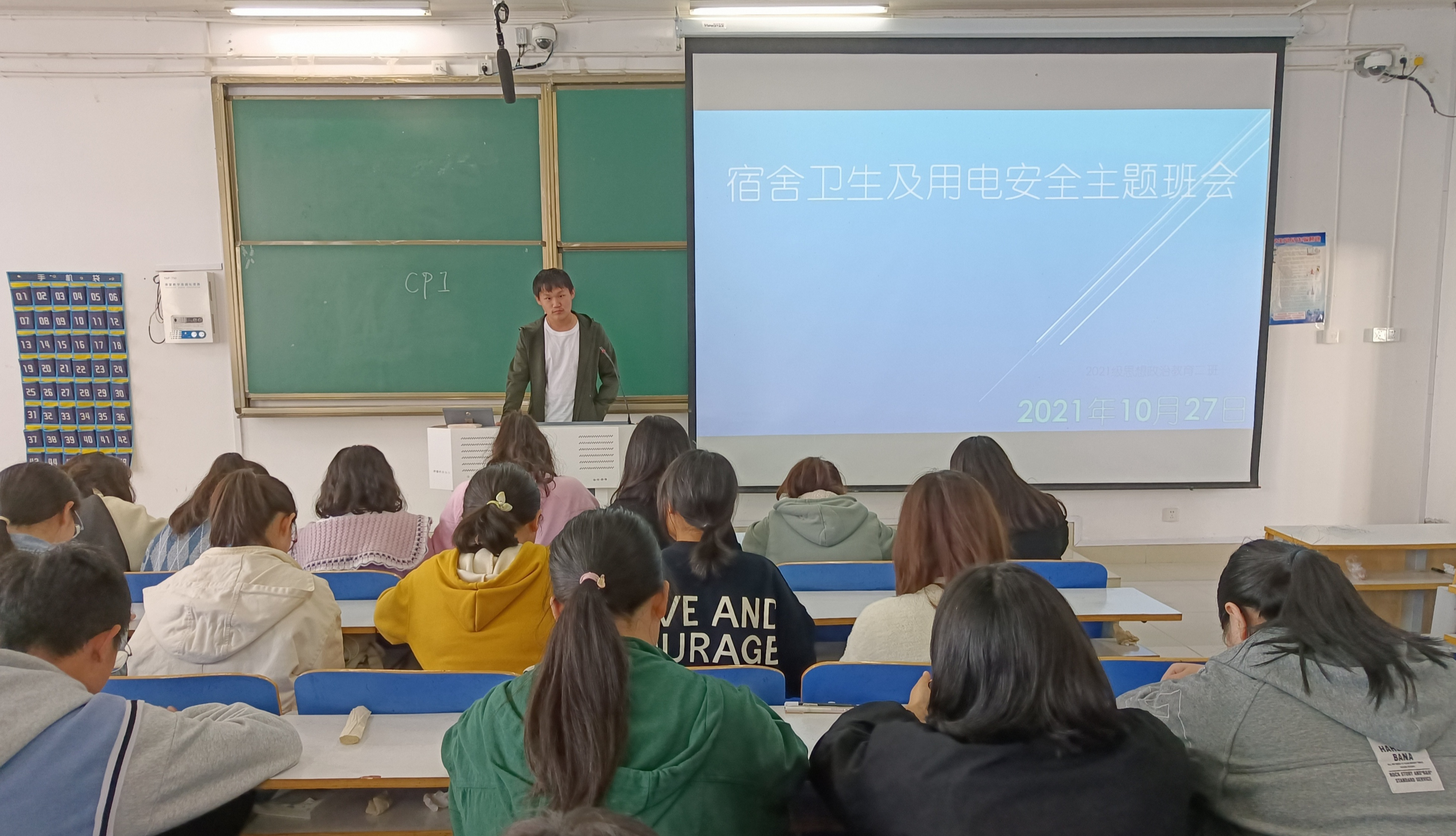 为了让同学们熟知寝室管理制度,提高安全用电意识,10月26日晚,beat365在线唯一官网2021级思想政治教育二班在社科楼514教室召开“寝室卫生及用电安全”主题班会。2021级思想政治教育二班全体成员参与此次班会。会议由团支书王婧欣和副班长任振豪主持。