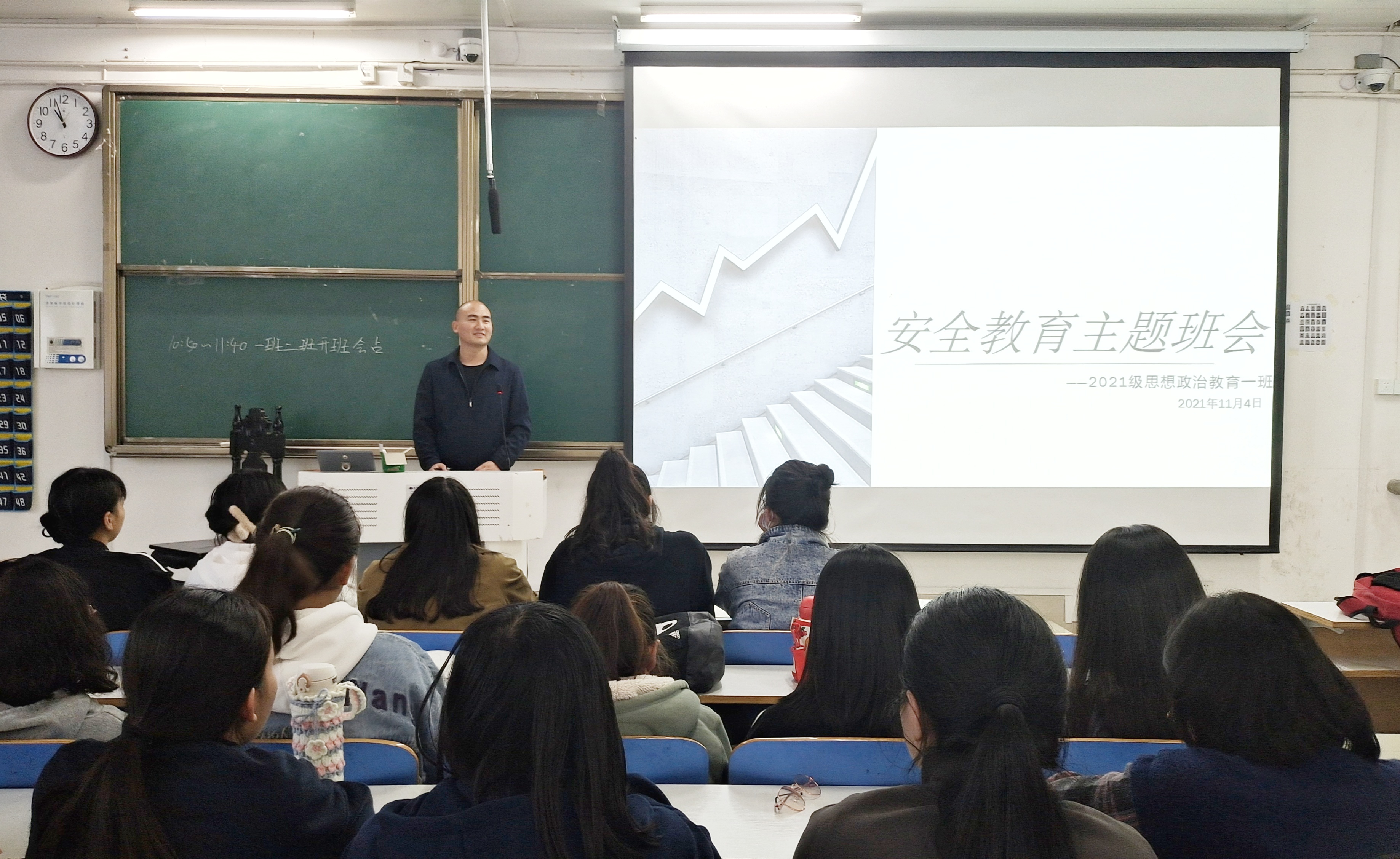 为进一步维护校园安全 ,加强学生安全意识。11月4日上午,beat365在线唯一官网2021级思想政治教育一班、二班在社科楼516顺利开展安全教育主题班会。辅导员周文豪以及2021级思想政治教育一班、二班全体同学共同参与此次班会,班会由周文豪主持。