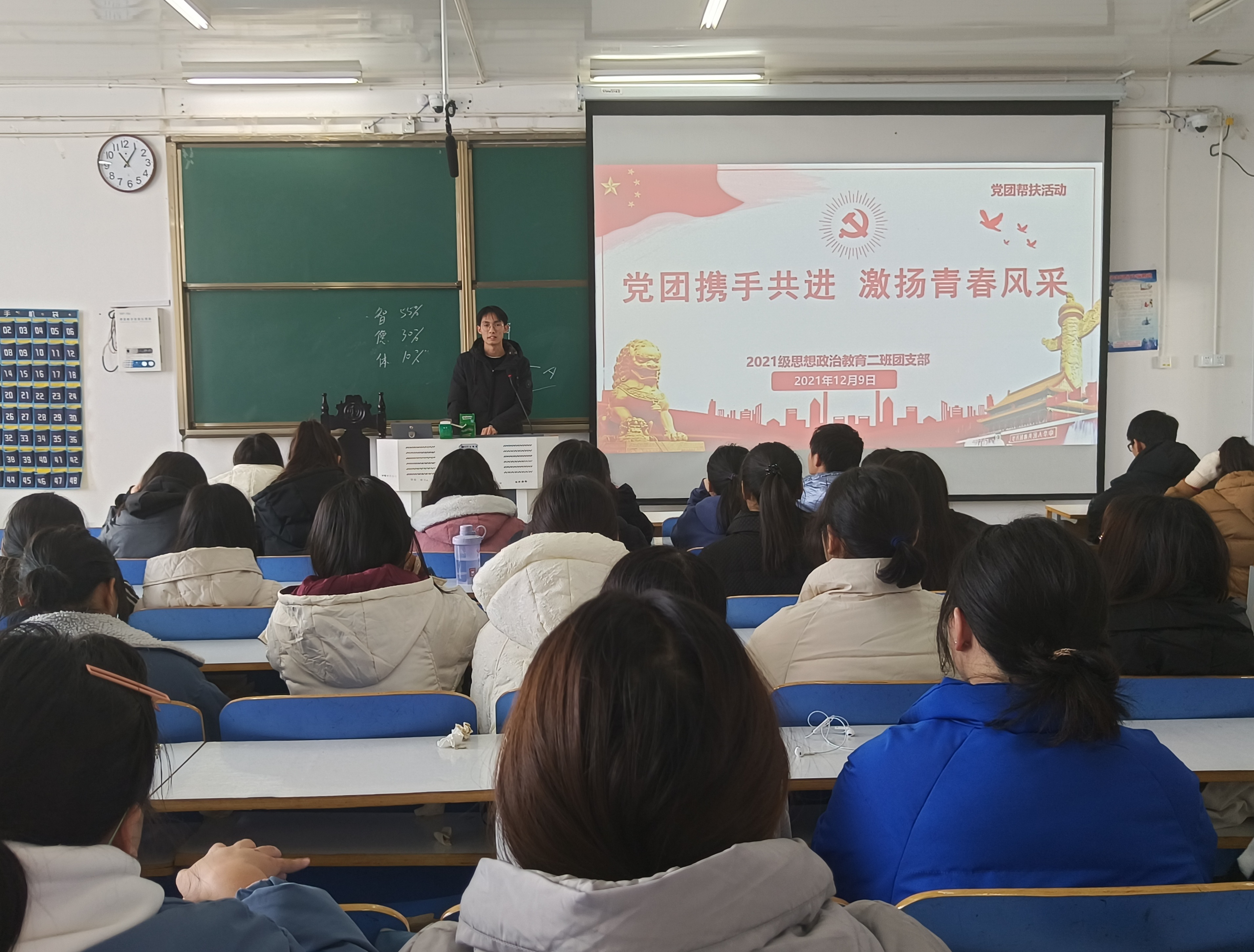 12月9日上午,beat365在线唯一官网2021级思想政治教育二班在社科楼516教室举办“党团携手共进,激扬青春风采”党团帮扶活动。王明亮、刘鹏及2021级思想政治教育二班全体团员参加此次活动。活动由团支书王婧欣主持。