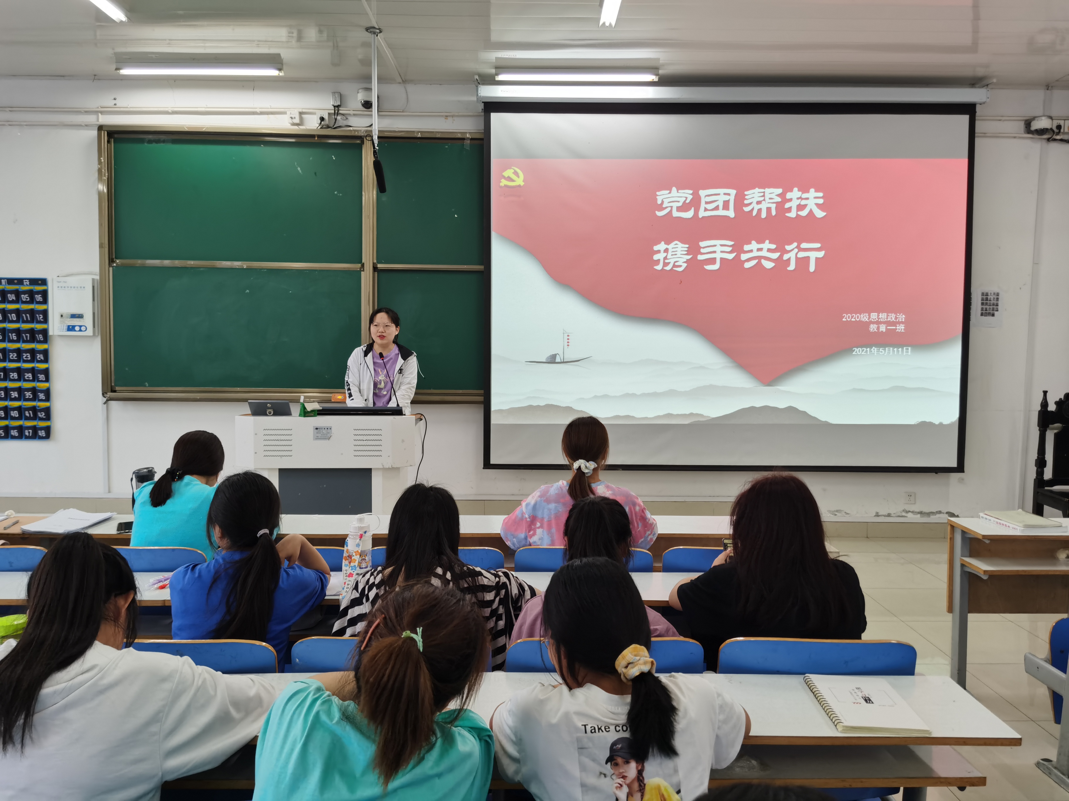 5月11日下午,beat365在线唯一官网2020级思想政治教育一班在社科楼516教室顺利开展党团帮扶会活动。2018级思想政治教育二班贾思琦与2020级思想政治教育一班全体同学参加了本次活动,活动由团支书卢茜雨主持。
