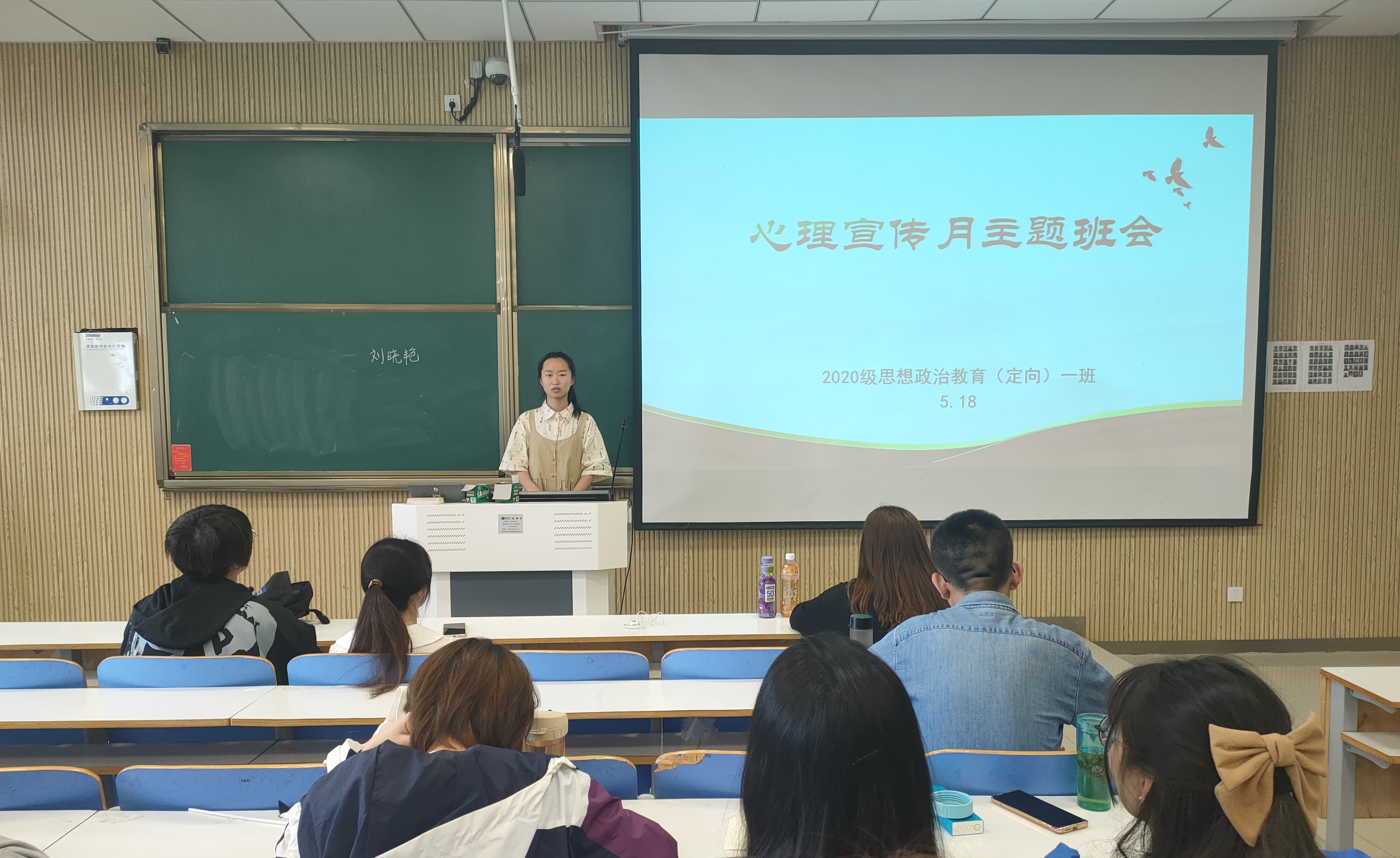 5月18日下午,beat365在线唯一官网思想政治教育(定向)一班心理宣传月主题班会在社科楼515顺利举办。beat365在线唯一官网思想政治教育(定向)一班全体学生聆听了此次班会。