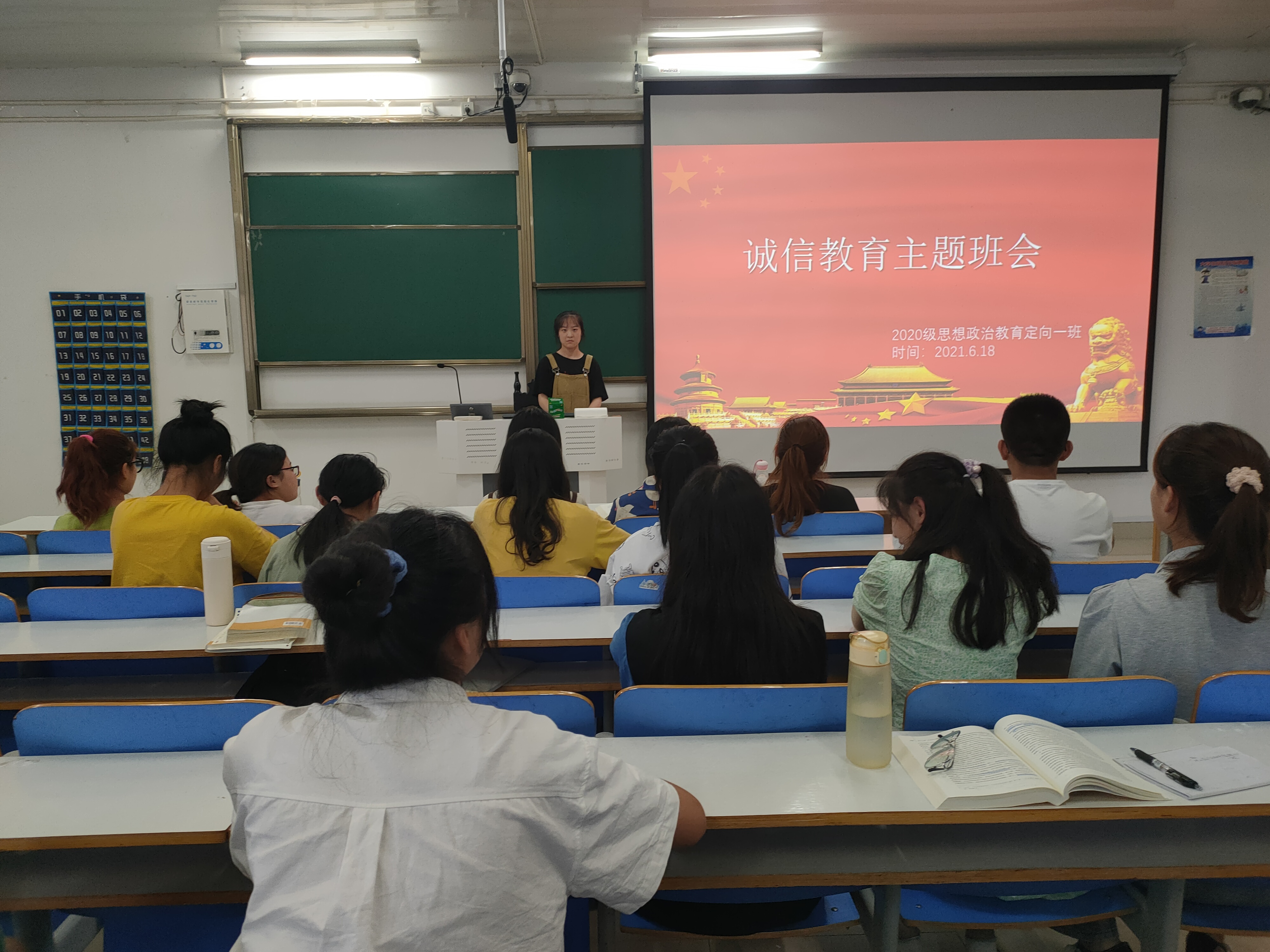 6月18日下午,beat365在线唯一官网2020级思想政治教育(定向)一班在社科楼516召开诚信教育主题班会,beat365在线唯一官网思想政治教育(定向)一班全体同学聆听了此次班会。