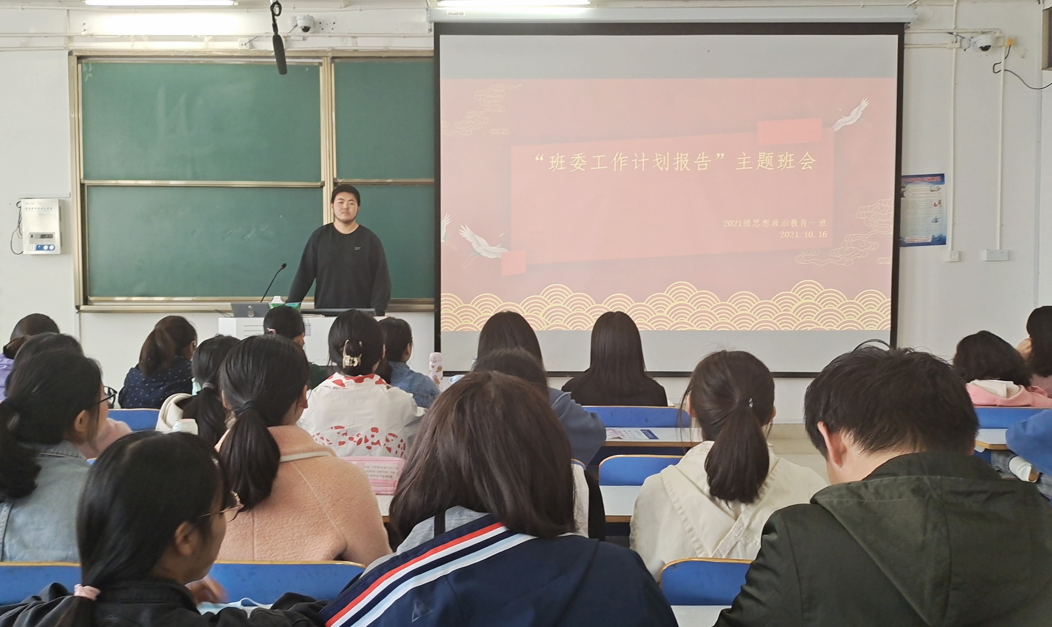 10月16日下午,beat365在线唯一官网2021级思想政治教育一班在社科楼515教室召开“班委工作计划报告”大会。2021级思想政治教育一班全体成员参加了本次会议。会议由班长戴翰林主持。