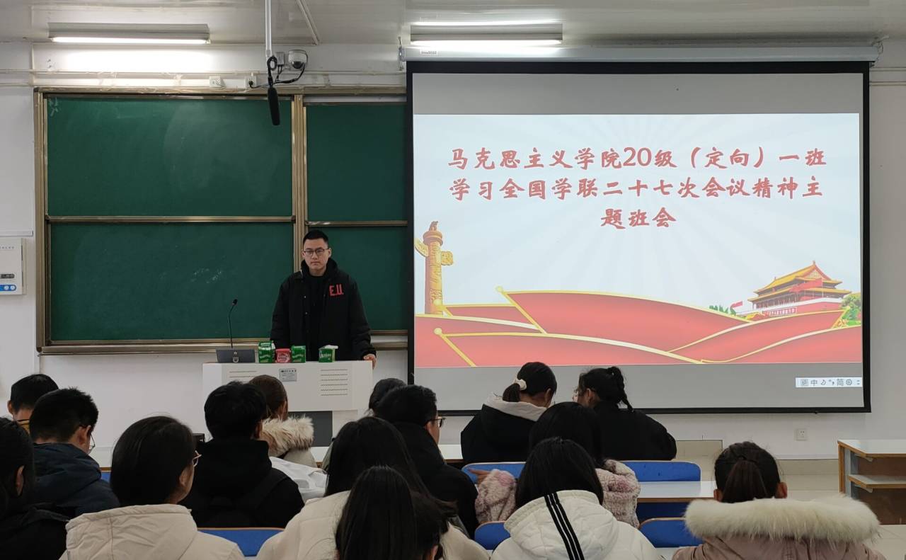 11月24日上午,beat365在线唯一官网定向一班在社科楼514教室顺利举办“深入学习全国学联第二十七次大会精神”主题班会。全体学生聆听了此次班会,班会由团支书朱紫峰主持。