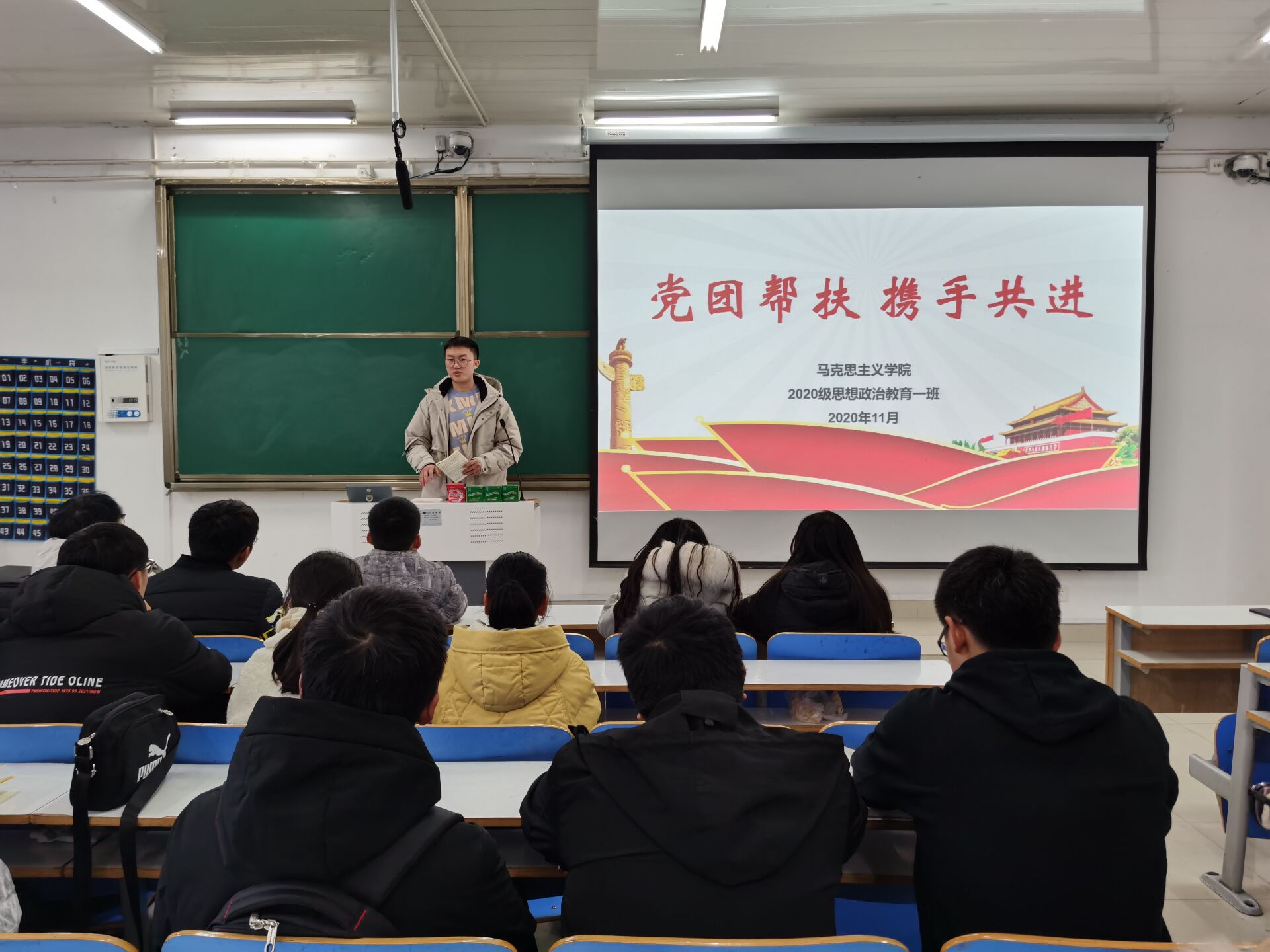 12月1日上午,beat365在线唯一官网2020级思想政治教育一班在社科楼514教室开展了党团帮扶会活动。2017级思想政治教育一班王雅纯、2018级思想政治教育一班邢子豪以及2020级思想政治教育一班全体同学参加了本次活动,会议由团支书卢茜雨主持。
