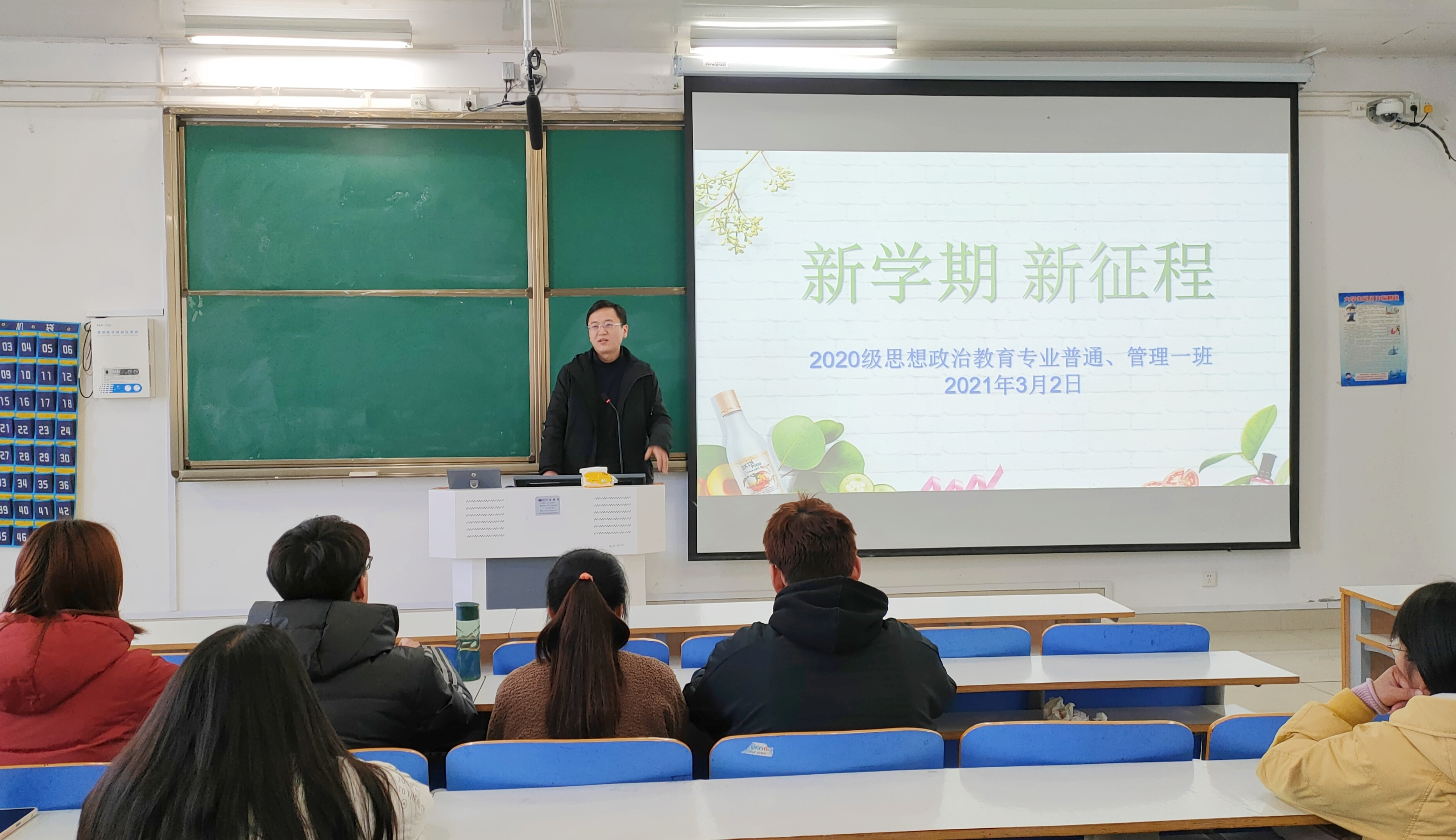 3月2日下午,beat365在线唯一官网2020级思想政治教育一班、定向一班在社科楼514教室顺利召开“新学期,新征程”主题班会,2020级思想政治教育一班、定向一班全体学生共同聆听了本次班会,班会由辅导员曹栋主持。