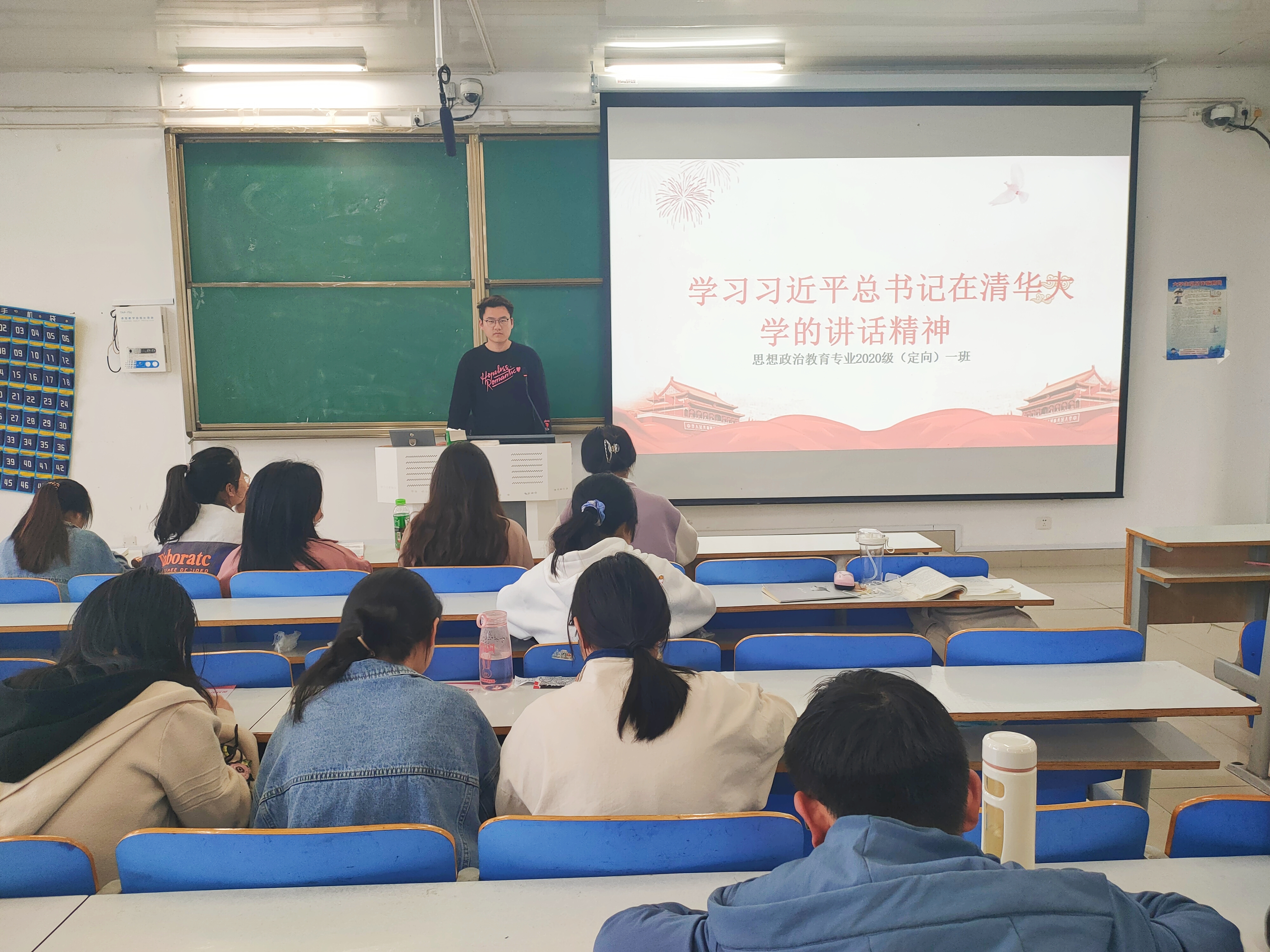 4月26日下午,beat365在线唯一官网思想政治教育(定向)一班在社科楼514教室顺利举办“学习习总书记在清华大学考察的讲话精神”主题班会。beat365在线唯一官网思想政治教育(定向)一班全体学生聆听了此次班会。班会由团支书朱紫峰主持。