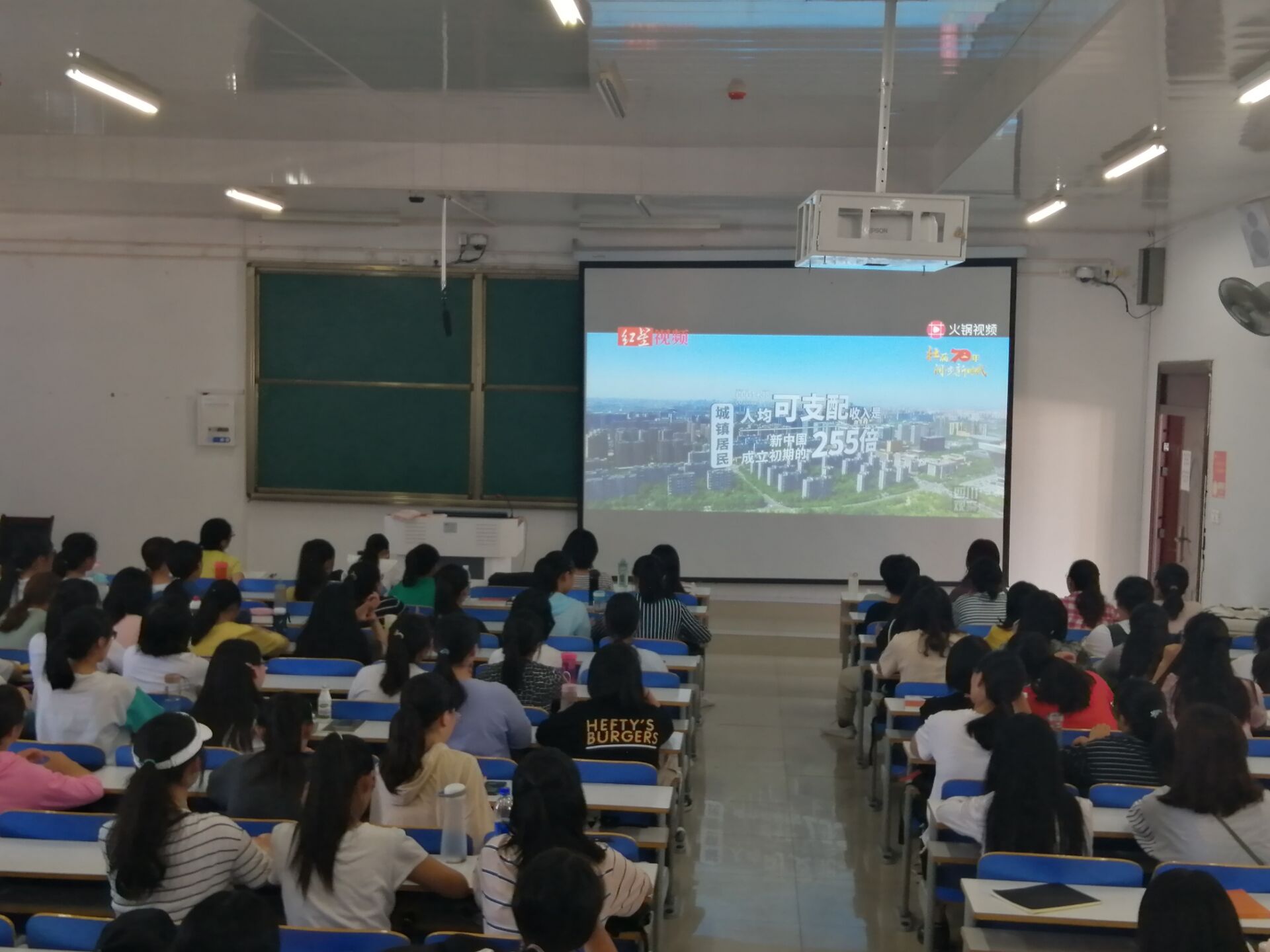 首先,贾子漪指出共青团作为党的后备军的重要性以及团员在日常生活中应当履行的职责与使命,并对此提出了两点建议:第一、青少年应当勤奋学习,努力工作,吃苦在前,享受在后;第二、青少年要牢固树立责任意识,勇于担当,敢于作为。随后,她以理论讲解与视频播放相结合的方式向新生们生动形象地展示了建国七十周年以来我国取得的辉煌成就。最后,王民做出总结,青少年要担当时代大任,勇立潮头,为建设富强民主文明和谐美丽的社会主义现代化强国而努力奋斗。