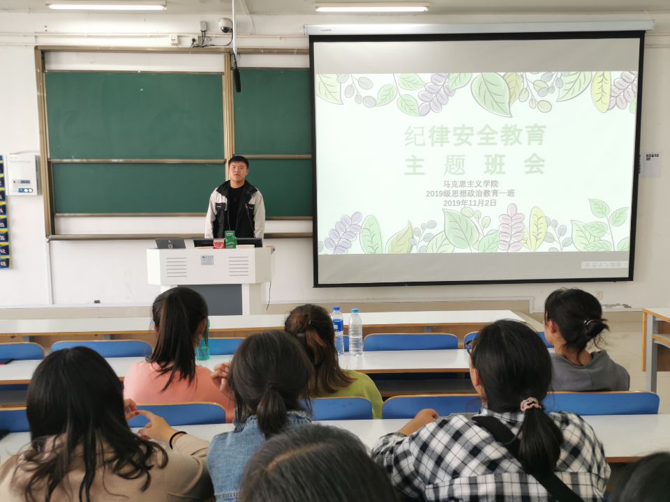 11月2日上午,beat365在线唯一官网2019级思想政治教育一班在社科楼516教室召开纪律安全教育主题班会,2019级思想政治教育一班全体同学参加本次会议。会议由班长王民主持。