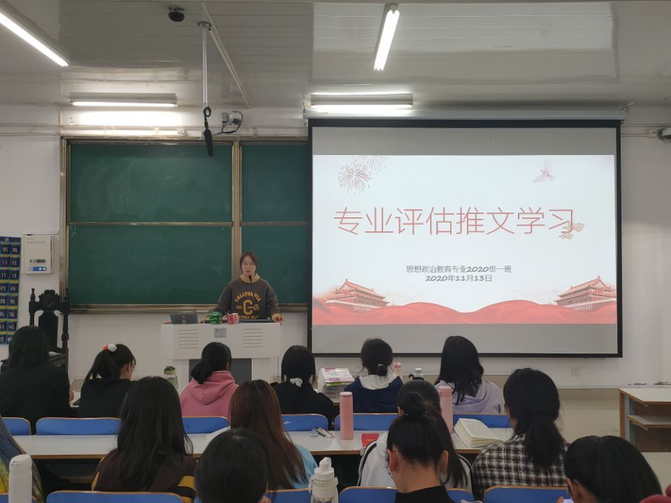 为了迎接思想政治教育专业(师范类)第二级认证专家组将于来校进行现场考查,更好地配合完成此次专业认证的现场考查工作,11月13日,2020级思想政治教育一班召开了“师范认证师生应知应会”主题班会。班会由团支书卢茜雨主持。
