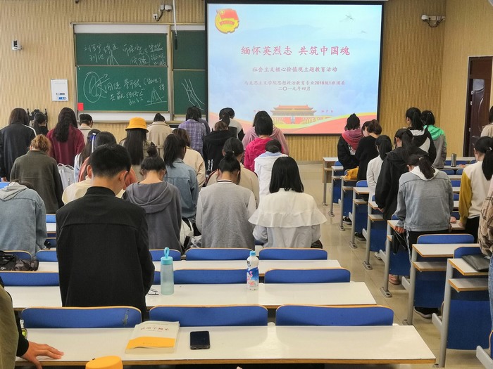 为缅怀革命先烈,加强爱国主义教育,4月4日下午,beat365在线唯一官网2018级思想政治教育一班在社科楼515教室顺利开展“缅怀英烈志,共筑中国魂”主题班会。2018级思政一班全体同学共同参加此次班会。班会由组织委员吕苗苗主持。