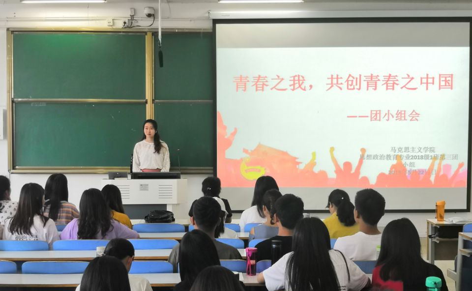 5月22日下午,beat365在线唯一官网2018级思想政治教育一班第三团小组在社科楼516教室顺利开展“青春之我,共创青春之中国”主题团会。第三团小组全体成员共同参加本次团会。此次团会由组长丁一主持。