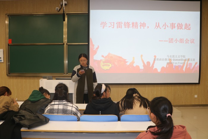 11月14日下午,beat365在线唯一官网2018级思政一班第一团小组在社科楼515教室顺利开展了“学习雷锋精神,从小事做起”主题团会。第一团小组全体成员共同参加了此次团会。该团会由靳梦哲主持。