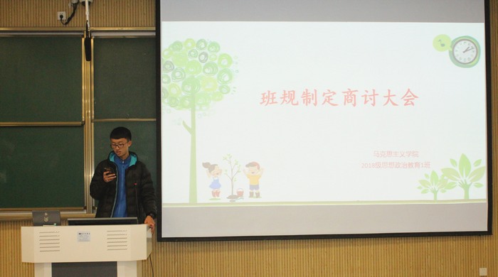 为增强同学们的纪律意识,提升班级事务管理水平,11月16日下午,beat365在线唯一官网2018级思想政治教育一班班委在教八楼顺利开展“班规制定商讨”会议。2018级思政一班全体团支部委员共同参加此次会议。会议由团支书靳雨露主持。