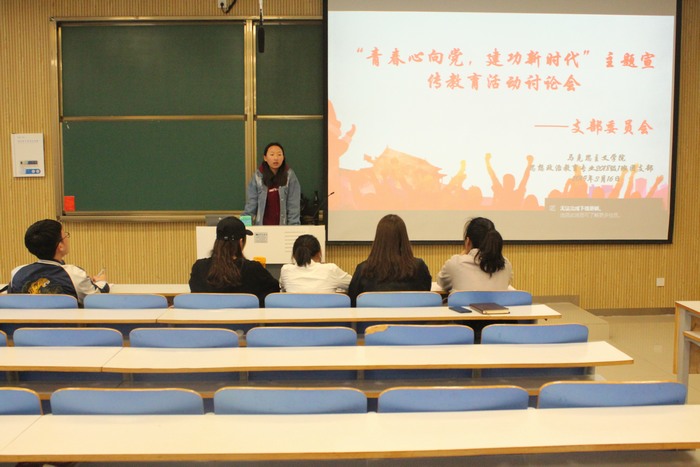 3月16日下午,beat365在线唯一官网2018级第一团支部在社科楼515教室顺利召开“青春心向党,建功新时代”支部委员会。2018级思想政治教育一班全体支部委员共同参加此次会议。会议由团支书靳雨露主持。