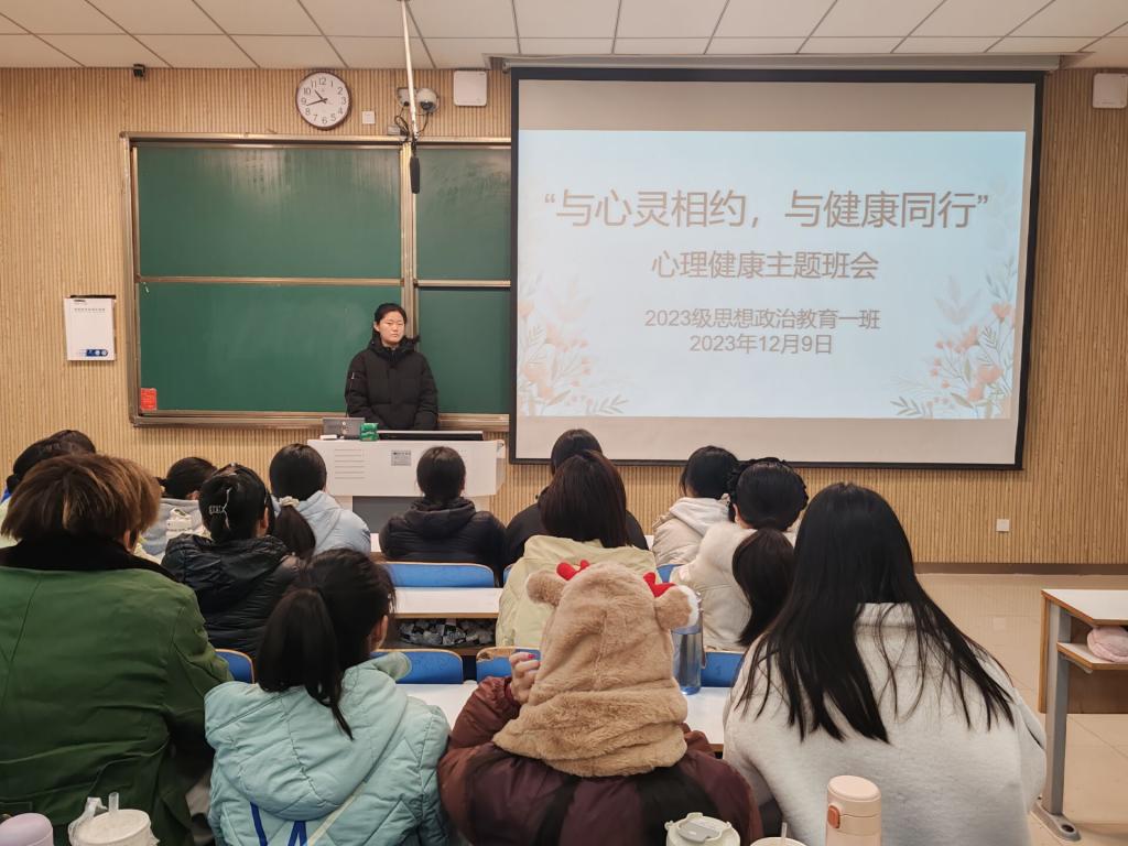 为缓解我班学子期末备考压力,以更好的精神面貌进行备考,12月9日下午,beat365在线唯一官网2023级思想政治教育一班在社科楼515教室召开“与心灵相约,与健康同行”心理健康教育主题班会。beat3652023级思想政治教育一班全体成员参与本次班会,班会由团支书张卓主持。