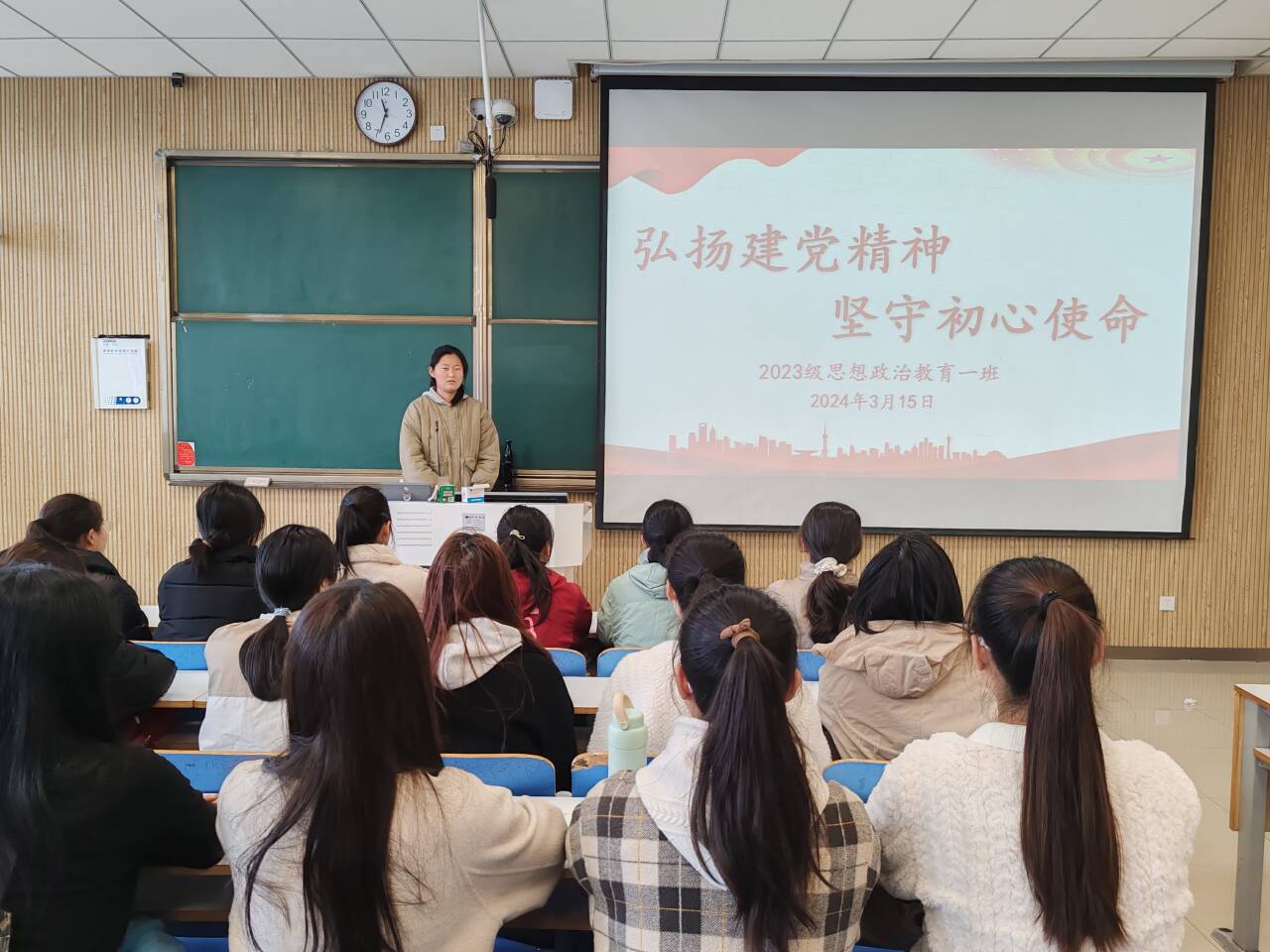 3月15日上午,beat365在线唯一官网2023级思想政治教育一班在社科楼515教室召开“弘扬建党精神,牢记初心使命”主题团课。beat3652023级思想政治教育一班全体同学共同参与本次团课,团课由团支书张卓主持。